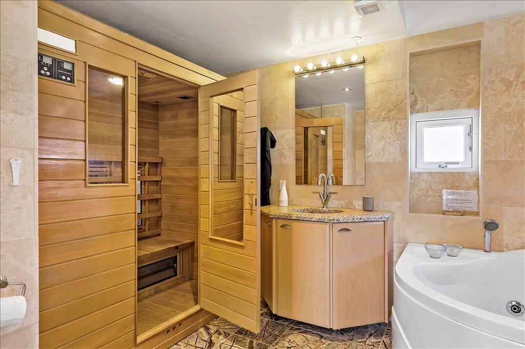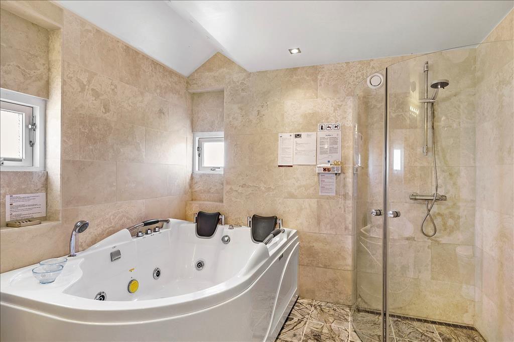 Her på adressen er der noget for enhver smag, så både store og små kan få den ferie, de drømmer om. På det største af sommerhusets to badeværelser er der et topersoners spabad og en infrarød sauna, hvilket er helt perfekt, når der står afslapning på programmet. Er I derimod i det legesyge hjørne, kan I gå over i annekset, som er udstyret med Nintendo Wii, et bob-spil og et miniature billard- og bordtennisbord. Om natten kan I tage anneksets dobbeltseng i brug, for det er et godt supplement til de seks sengepladser, der er fordelt på sommerhusets tre soveværelser. I løbet af dagen kan I samles i sommerhusets opholdsrum, hvor stue og køkken ligger i ét. Vil børnene have deres egen lille hyggekrog, kan de tage stigen op til hemsen, der er indrettet med sit eget TV med Chromecast.