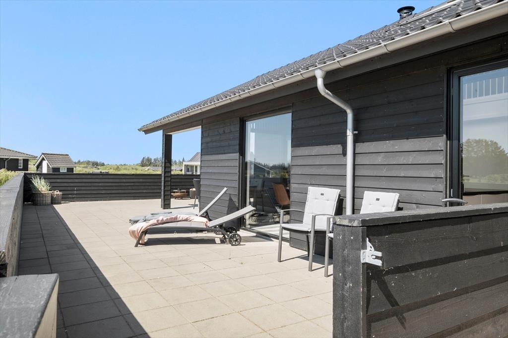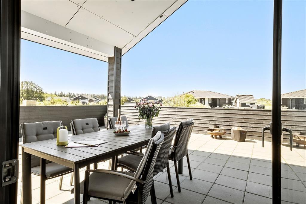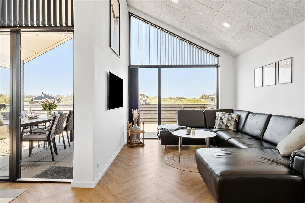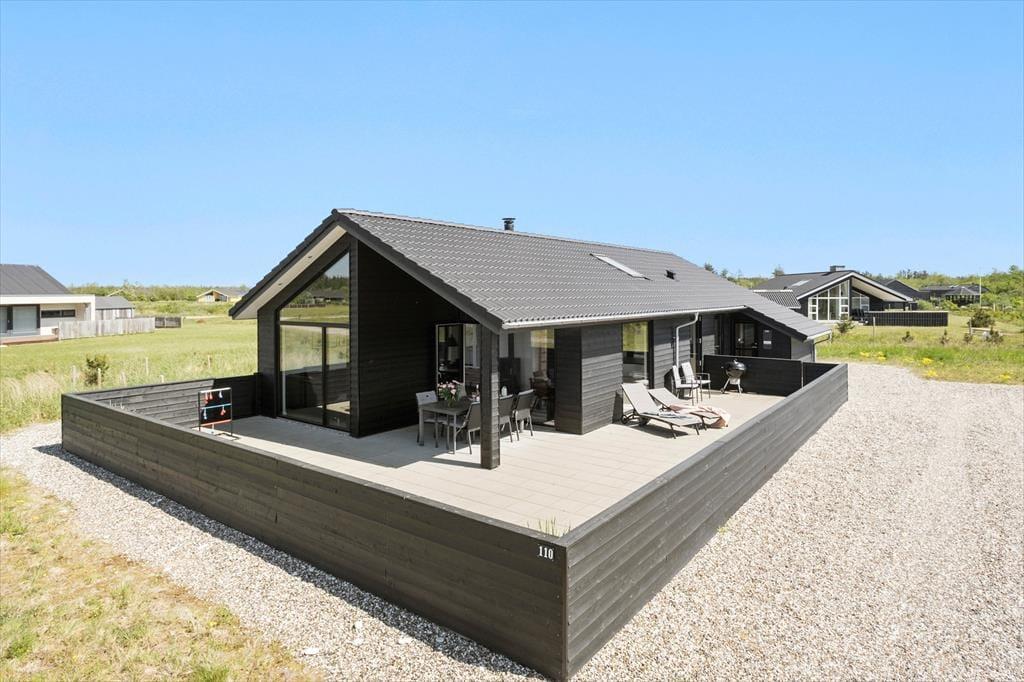 Spabad, brændeovn og en kæmpe solterrasse – det er nogle af de lækre detaljer i dette moderne kvalitetssommerhus, der ovenikøbet ligger i Tranum Feriebys hyggelige og børnevenlige omgivelser.