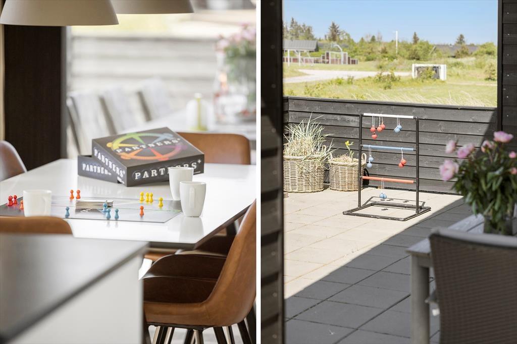 Sommerhusets store solterrasse hænger godt sammen med opholdsafdelingen, så når vejret er godt, er det særdeles let at flytte både frokosten og familiehyggen ud i solskinnet. Her er skønt at være – også om aftenen, hvor den overdækkede del af terrassen passende kan blive favoritpladsen, når I vil grille og nyde det gode selskab og den lyse sommerhimmel. Med sine 1.650 m2 har grunden en flot størrelse, men når legebørn i alle aldre virkelig vil folde sig ud, er det oplagt at rykke over på feriebyens store fællesareal, der er udstyret med et væld af aktivitetsmuligheder.