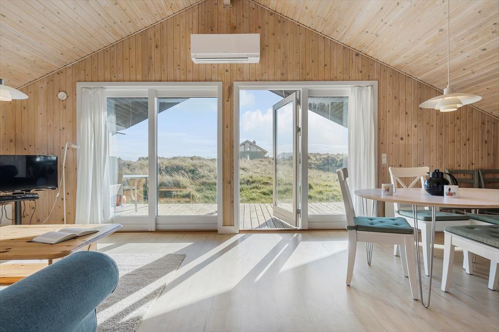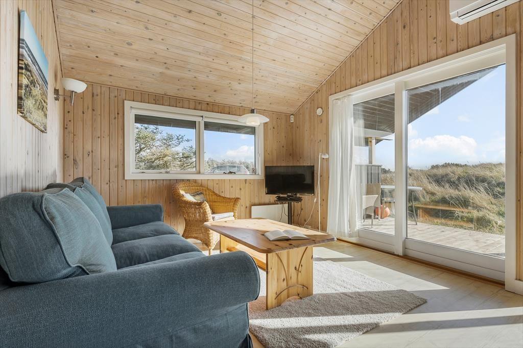 Trænger I virkelig til at koble af i roligt tempo og flotte naturomgivelser, har I kig på det helt rette sommerhus. Udsigten til klitlandskabet kan nydes, selv når I opholder jer inden døre, hvor tiden blandt andet kan bruges på at spille kort, lave mad og sove længe i de hyggeligt indrettede rum. De to soveværelser er udstyret med henholdsvis en dobbeltseng og to enkeltsenge, og badeværelset er funktionelt indrettet med både bruser, vaskemaskine og gulvvarme. Køkken og stue ligger i åben forbindelse, så madlavningen kan nemt inkorporeres i feriehyggen – som for øvrigt også kan byde på en filmaften eller to, for der er tv med Chromecast i sofahjørnet.