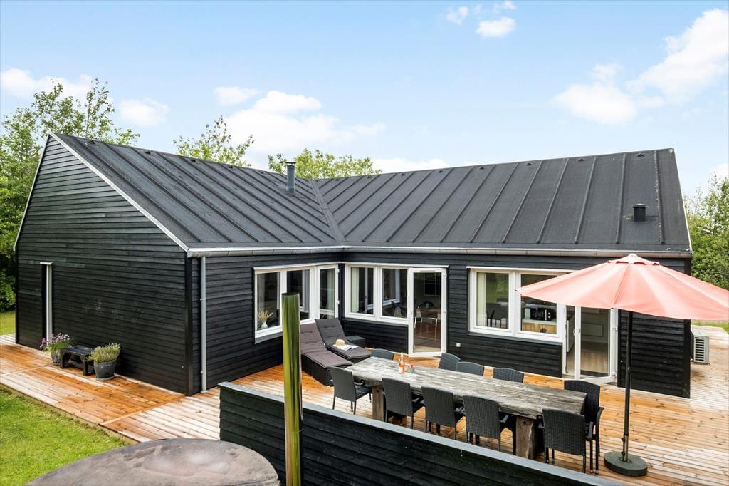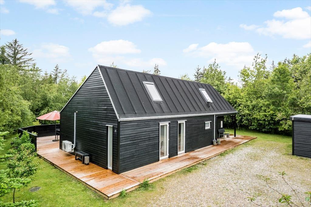 I Tranum Ferieby står dette store sommerhus klar til at byde jer velkommen til nogle herlige dage. Inden døre kan I blandt andet nyde livet i spabadet og saunaen, og ude på den helt ugenerede grund er der både vildmarksbad, shelter og et skønt terrassemiljø– og så kan I desuden glæde jer til alle feriebyens sjove og familievenlige fællesfaciliteter.