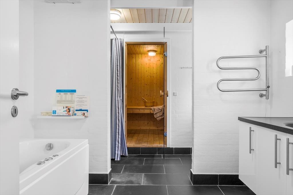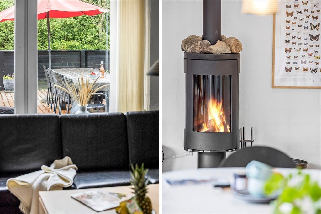 Sommerhusets 158 m2 er blandt andet fordelt på to badeværelser og fem soverum, hvoraf to af sovegemakkerne er at finde på husets store hems. Dertil kommer en entré med vaskefaciliteter og et stort opholdsrum med integreret køkken, og resultatet er en særdeles rummelig feriebolig, der nemt og bekvemt kan huse op til 10 personer. Rundt omkring i huset er der mange dejlige detaljer at hæfte sig ved: For eksempel er der brændeovn i stuen, og her finder I også en fladskærm med kabel-tv og Chromecast. Det åbne køkken er veludstyret – blandt andet med opvaskemaskine – og det største badeværelse byder både på et mindre spabad og en sauna, så der er rig mulighed for at slappe af og nyde ferien.