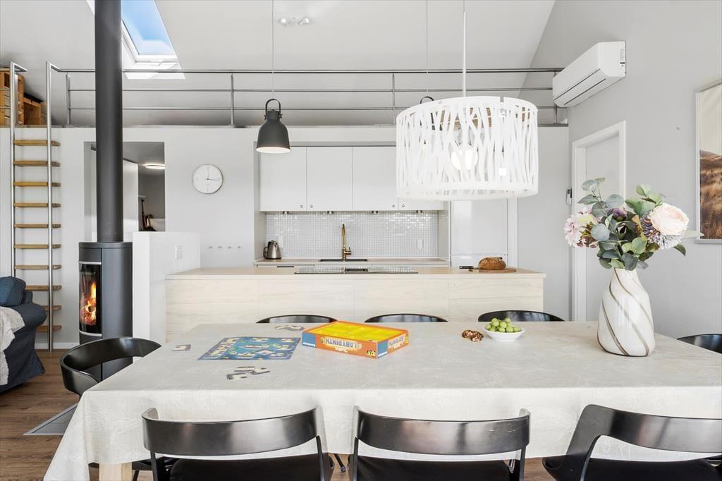 Tranum Ferieby er et skønt sted at holde ferie for hele familien – ikke mindst, når det foregår i dette lækre sommerhus, der er udstyret med et lækkert køkken, et herligt terrassemiljø og et stort aktivitetsrum i annekset.