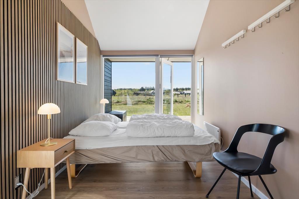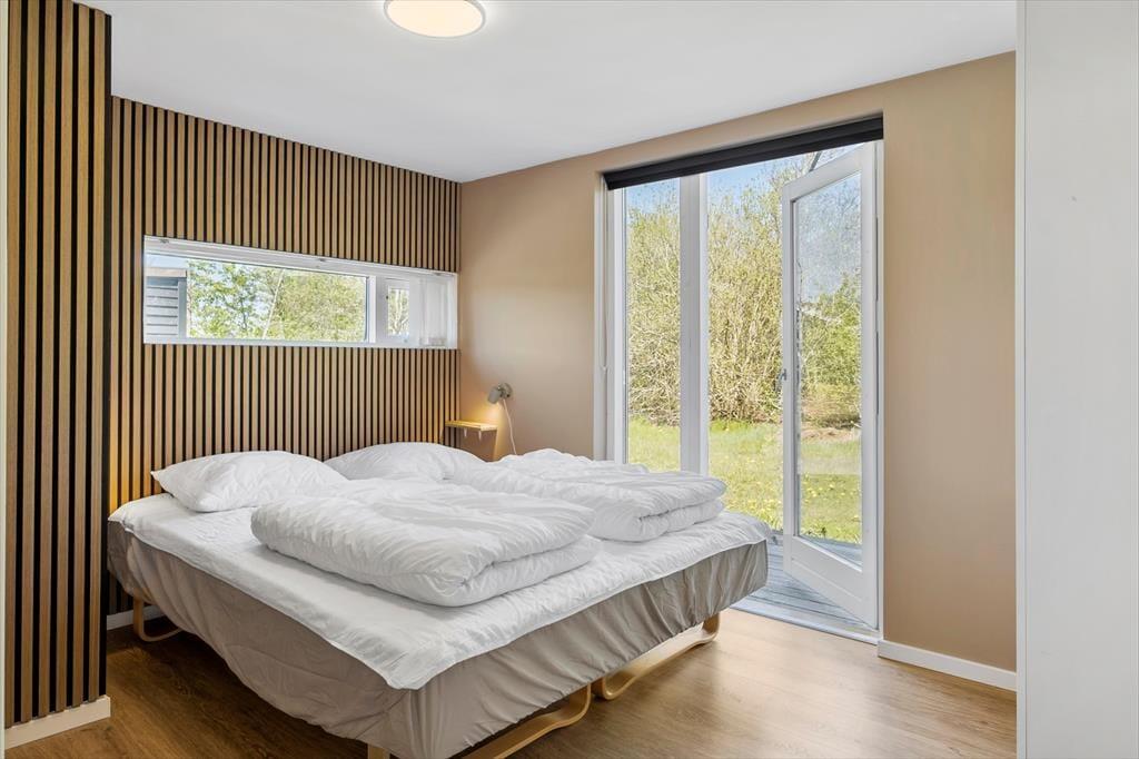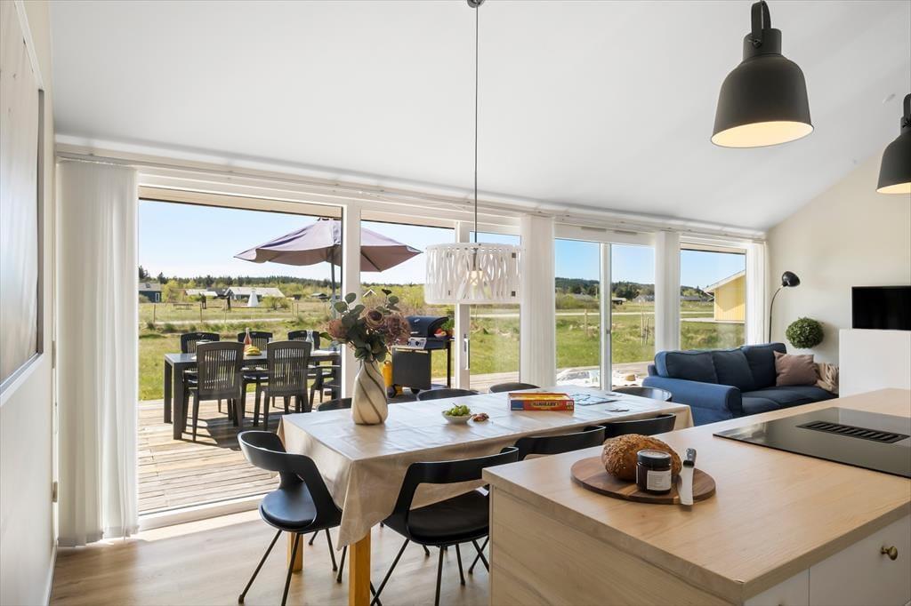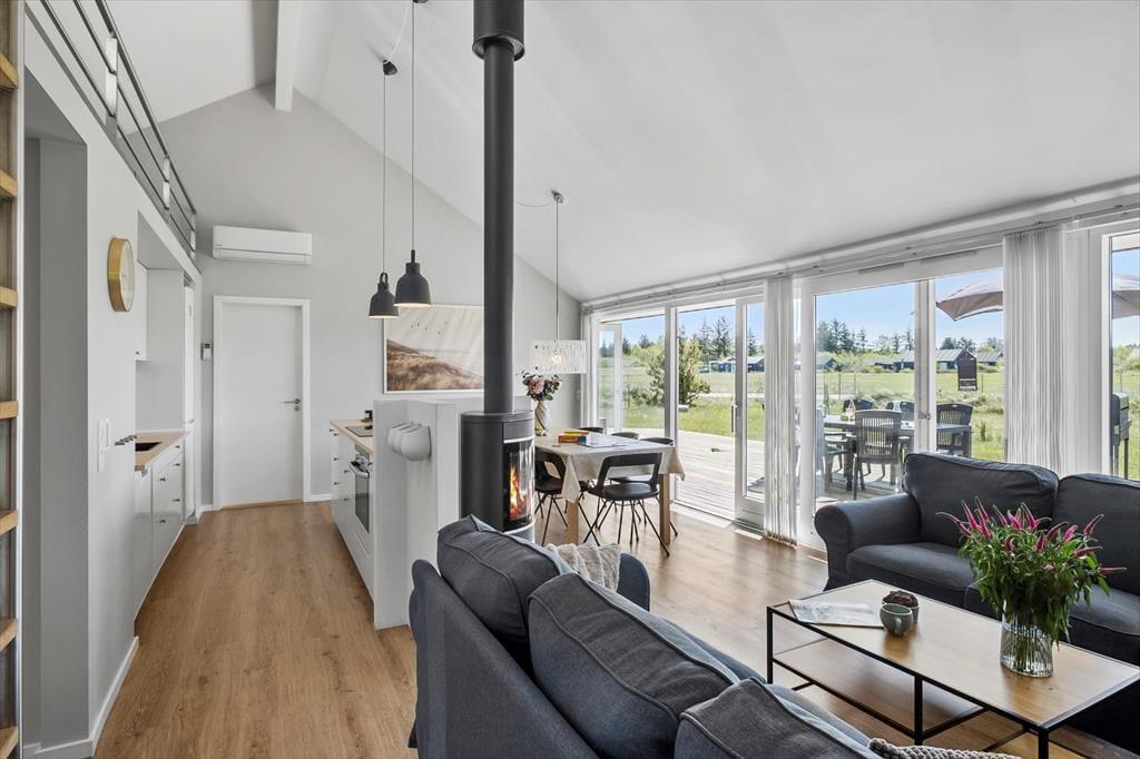 Sommerhuset er et flot byggeri fra 2009 på 90 m2, og dertil kommer annekset på 29 m2, som er omdannet til et aktivitetsrum med bordtennis, billard og dart. I begge bygninger er indretningen lys og stilren med interiør af ordentlig kvalitet. Planløsningen i sommerhuset er perfekt til seks personer, for inden døre finder I tre gode soveværelser, der alle er udstyret med komfortable dobbeltsenge, foruden to rummelige badeværelser med bruser og gulvvarme. Centralt i huset ligger stue og køkken samlet: Det er et skønt opholdsrum med højt til loftet og et stort, sydvendt vinduesparti plus brændeovn, hems og fladskærms-tv med parabol og tysk tv. Vil I se dansk tv, kan dette streames via egne enheder til Chromecast. Endelig skal det nævnes, at der er solceller på sommerhusets tag, og derfor er alt forbrug inkluderet i lejen.