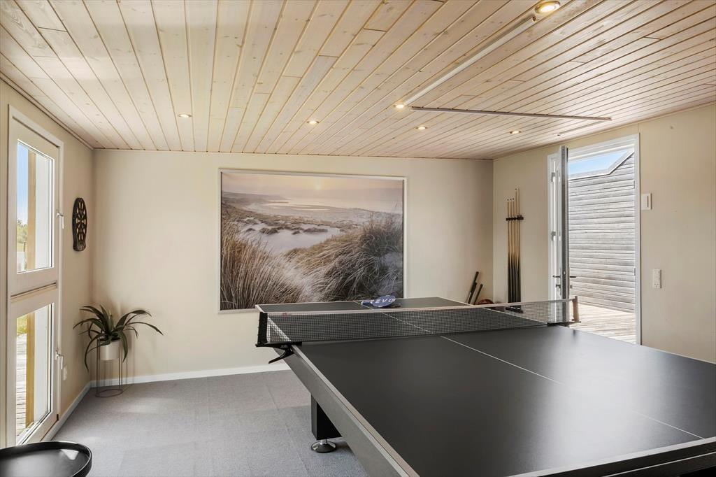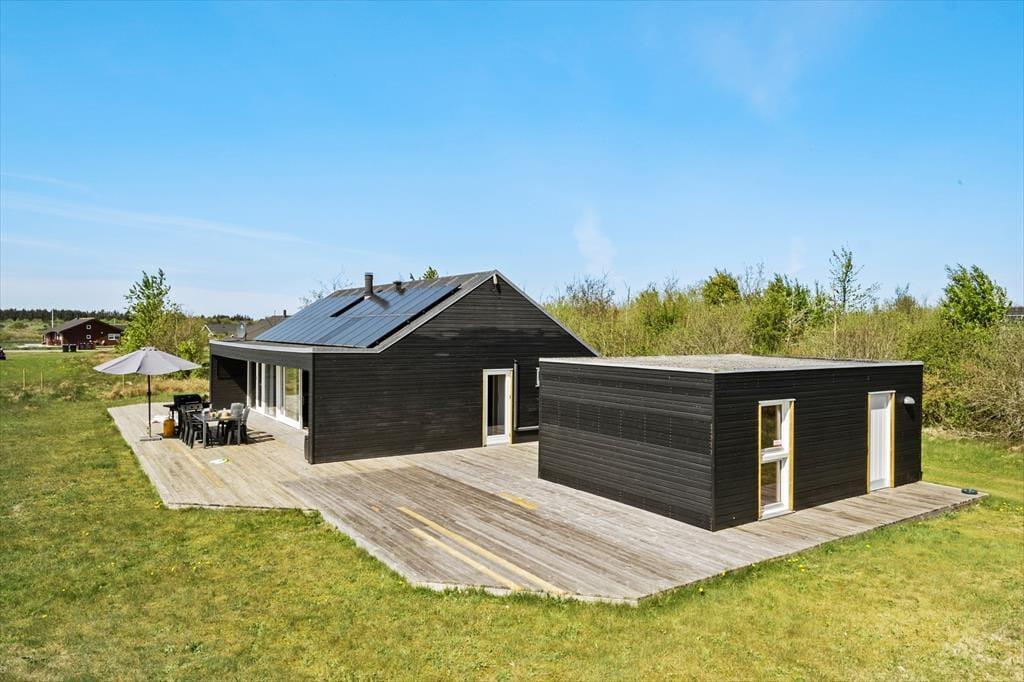 Flot og moderne sommerhus med aktivitetsrum i Tranum Ferieby.