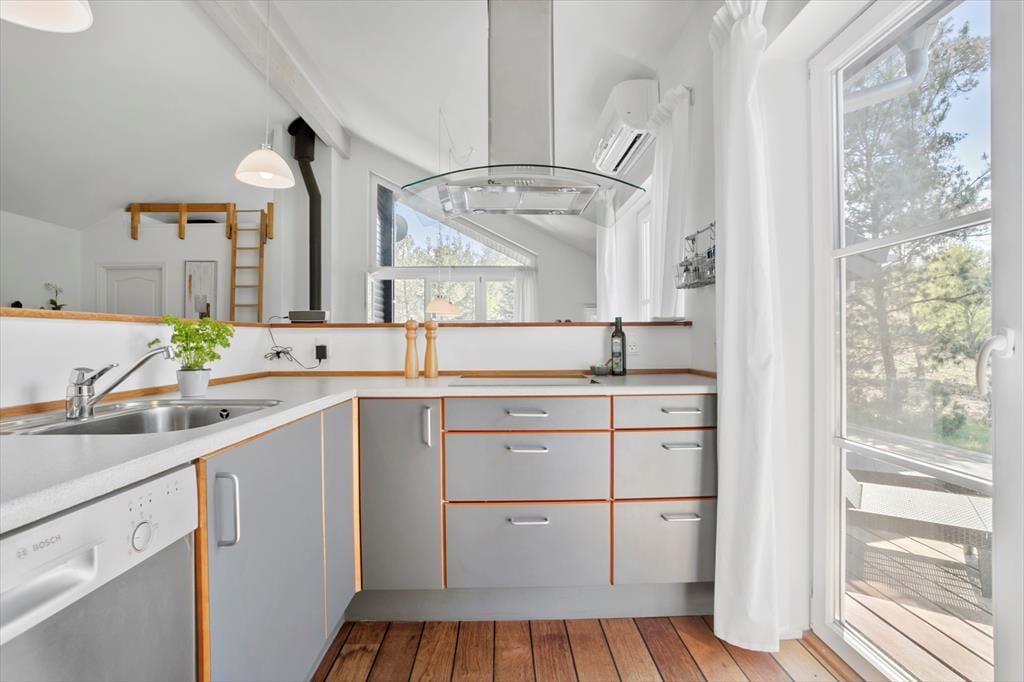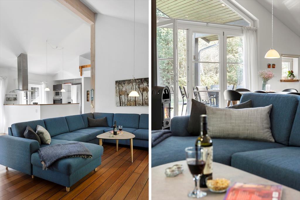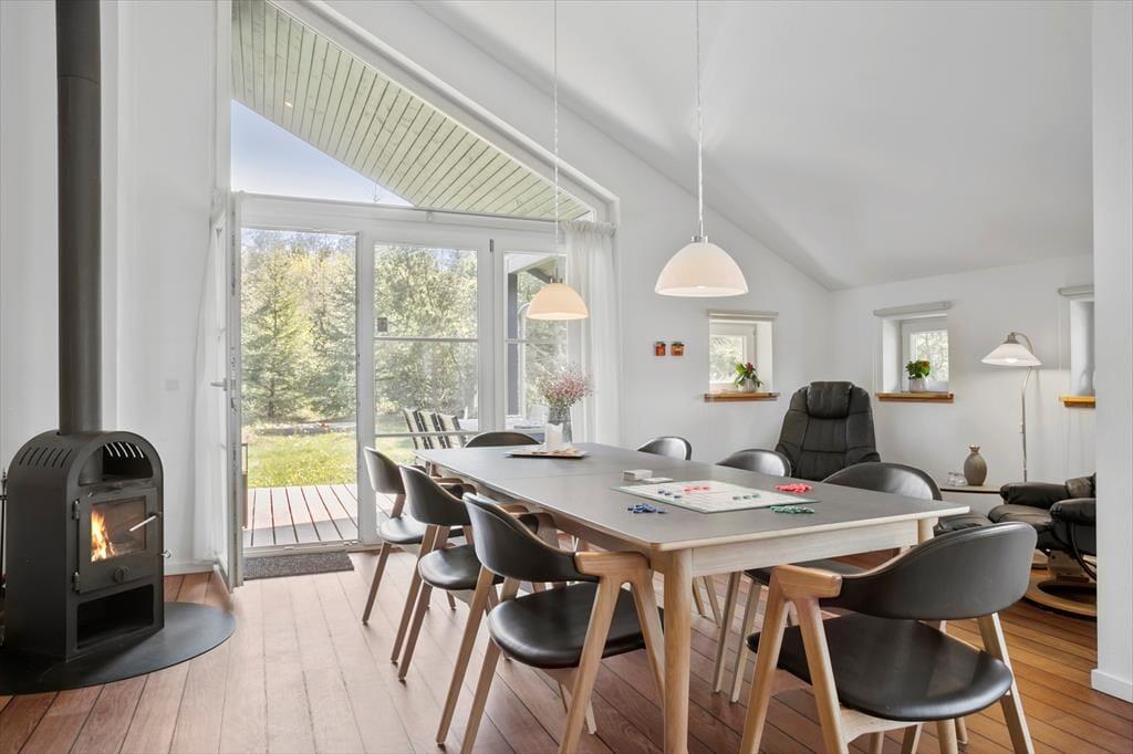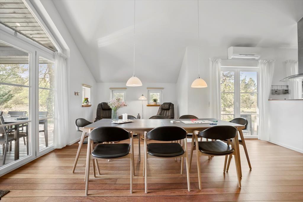 Dette sommerhus er virkelig flot indrettet med lyse vægge, store vinduer og mørke trægulve. Køkken og badeværelseselementer er af høj kvalitet, ligesom der er tænkt over alle detaljer fra lysestager til farven på tæpper og puder i sofaen; alt sammen for at skabe en varm og imødekommende stemning. Med sovepladser til otte personer (hemsen med madrasser fungerer som det 4. soveværelse) og to badeværelser kan her sagtens være en stor familie, inklusiv et hold bedsteforældre eller venner. På det store badeværelse finder man spa og sauna, og i det store opholdsrum kan man tænde op i brændeovnen og lade varmen og hyggen sprede sig. Desuden gratis og trådløst internet, så medbring gerne tablet eller pc, så børnene kan se en film eller spille lidt, hvis der skulle komme en enkelt regnvejrsdag. Alt i alt gode faciliteter for en vellykket og afslappende ferie i det nordjyske.