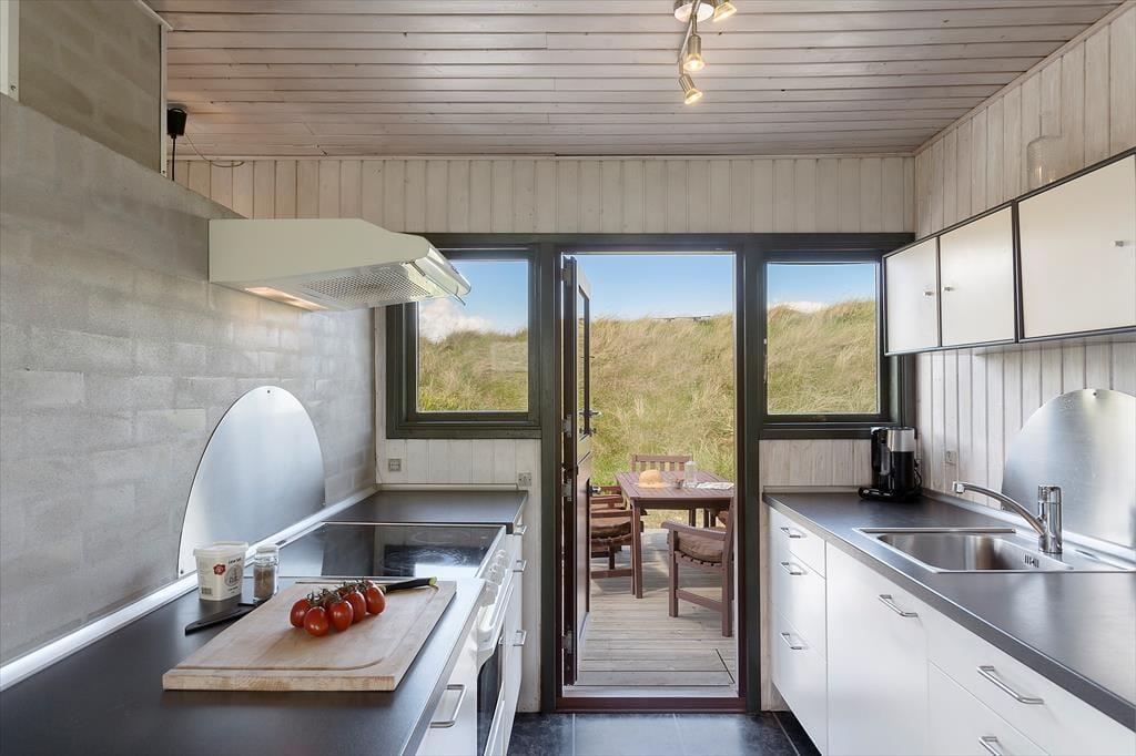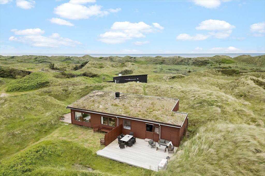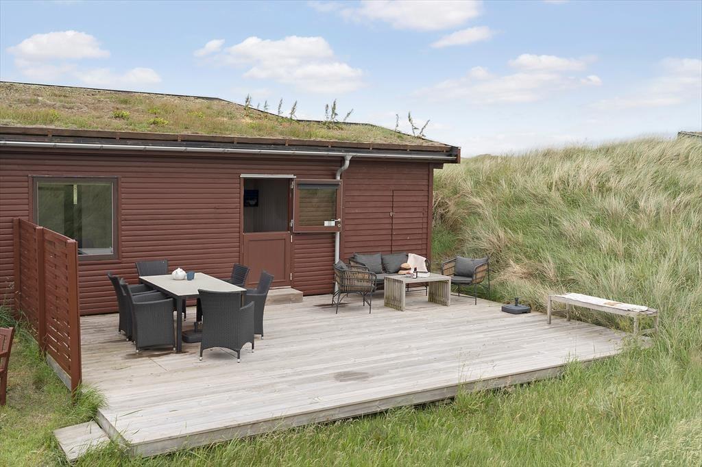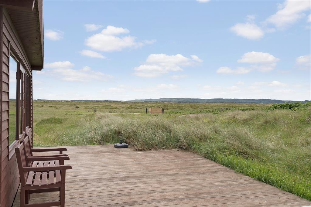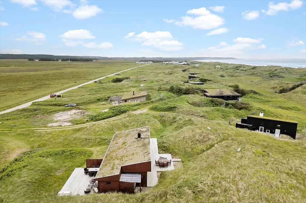 Alle sommerhusets terrasser ligger godt placeret, så uanset om du vil drikke morgenkaffe, have en middagslur eller spise aftensmad i solen, burde det kunne lade sig gøre. Mod øst kan du se længst ud over det naturskønne område, men det er nu også rart at sidde på husets vestside, hvor du er omgivet af klitter og har frit udsyn til aftenhimlen, når den nedadgående sol farver skyerne i lilla og orange nuancer. Vil du se solen synke helt ned i havet, skal du bare gå i få minutter, før du står på toppen af den yderste klitrække og har fuldt overblik over kyststrækningen.