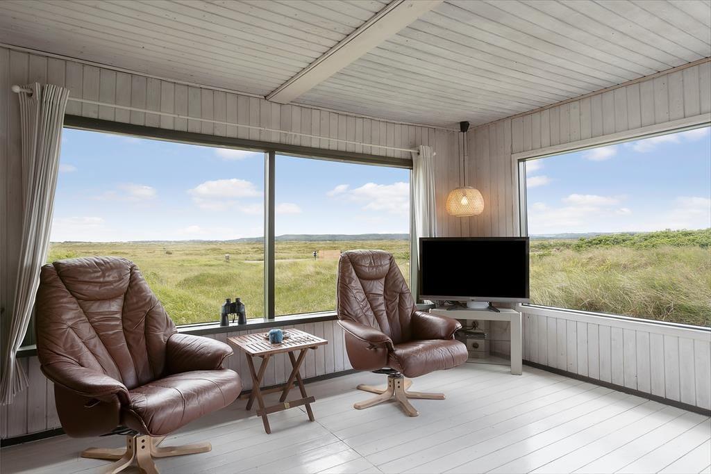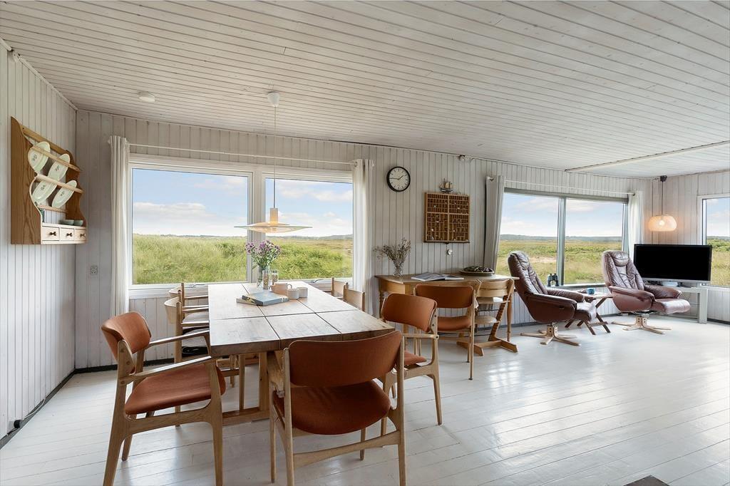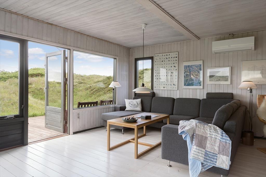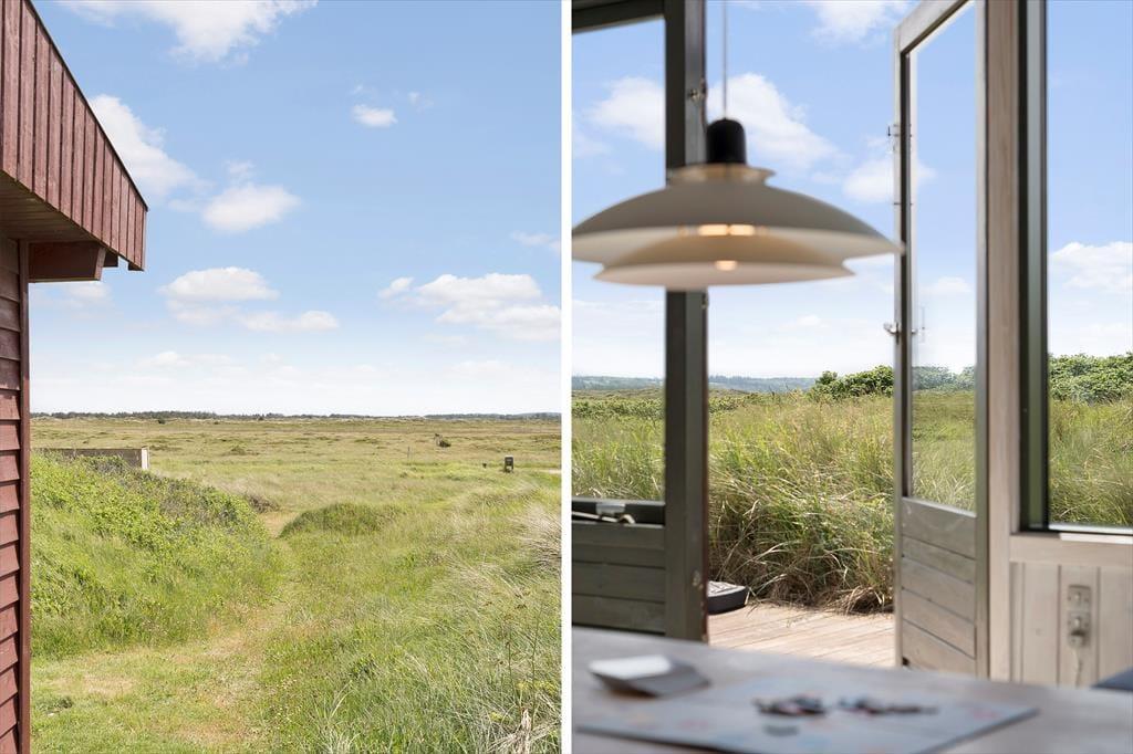 Det er de færreste sommerhuse, der ligger så naturskønt som denne skønne perle på Ejstrup Strandvej 24. For at komme frem til Vesterhavet og den fredfyldte Ejstrup Strand skal du bare følge en sti den korte tur over klitterne, og inde fra stuen har du den smukkeste udsigt over det åbne landskab ind mod Tranum Klitplantage.