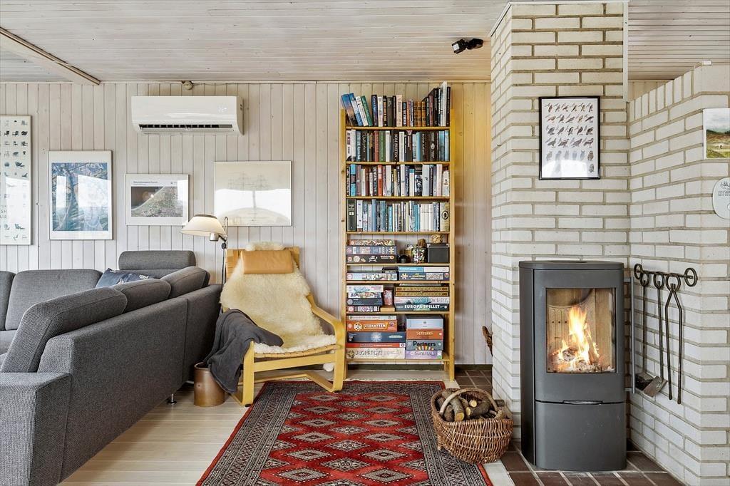 Hvis du trænger til en klassisk sommerhusferie, hvor der er god tid til at læse bøger, lægge puslespil og være sammen med familien, har du fundet det helt rette sted. Stuen emmer af hygge og charme, og gennem de store vinduer kan du kigge ud på de åbne vidder, mens du drikker kaffe og lader tankerne flyve. Centralt i rummet står en dejlig brændeovn, og når det er tid til at lave mad, kan du gå over i det åbne køkken for at trylle noget lækkert frem. I den anden halvdel af huset venter et badeværelse og tre gode soveværelser, og fra ét af dem har du direkte adgang til terrassen, når solen og den friske luft lokker dig udenfor.