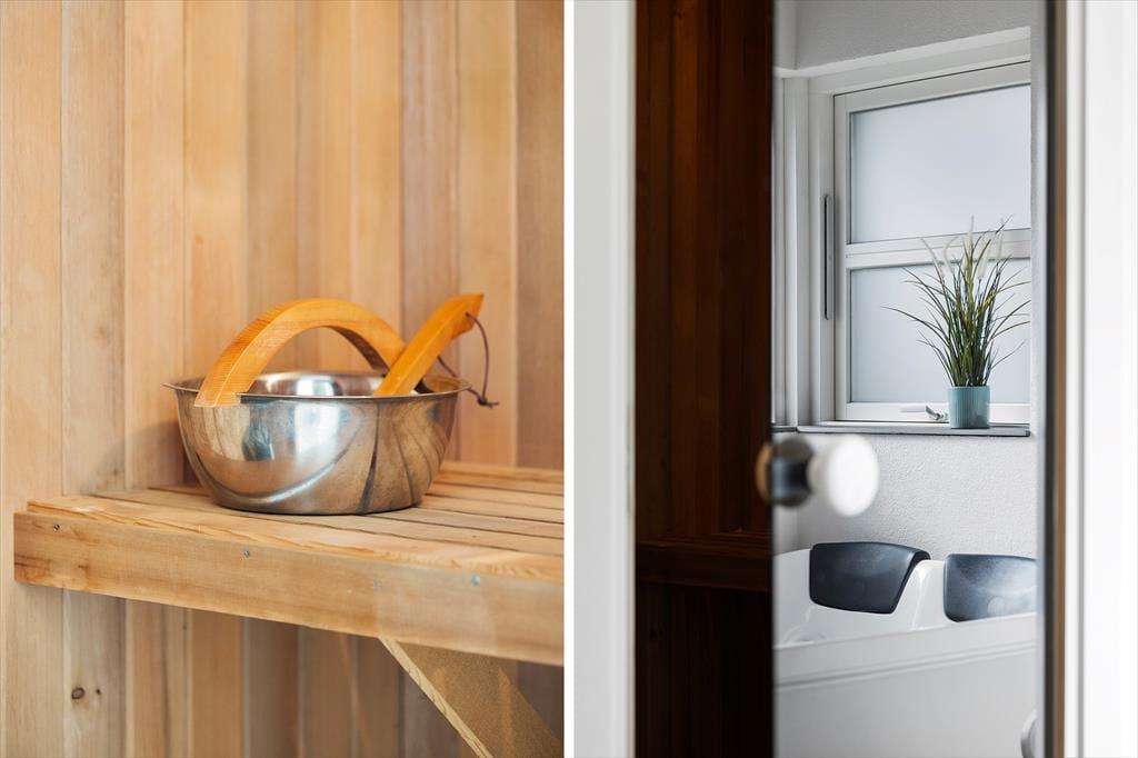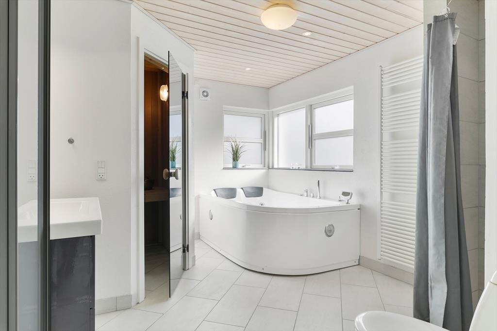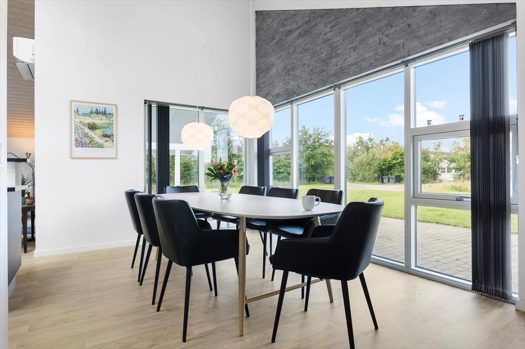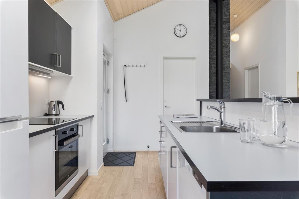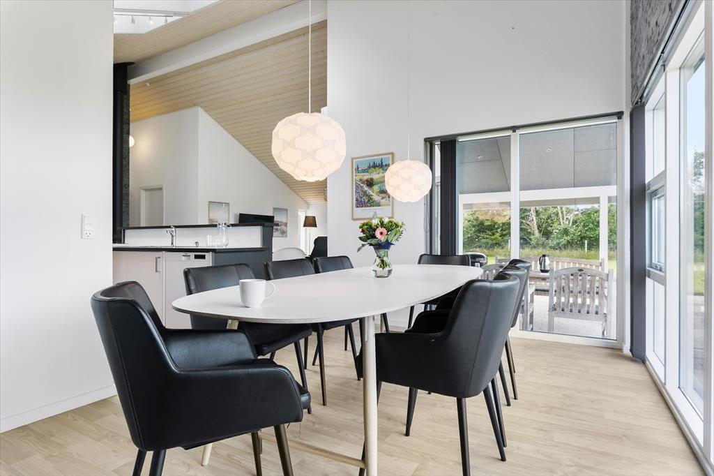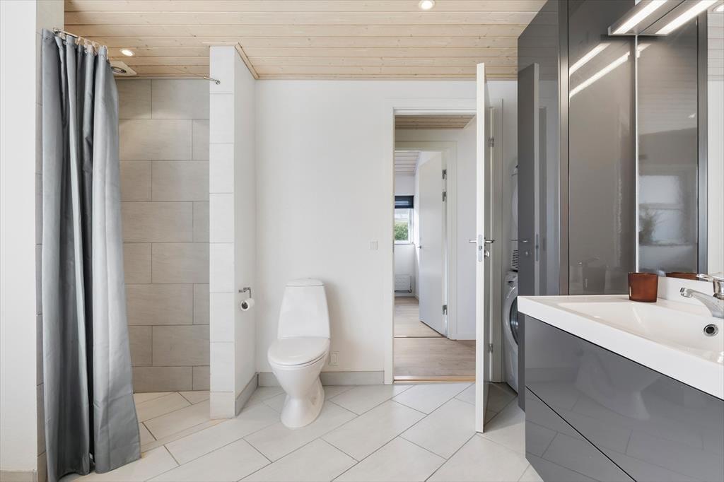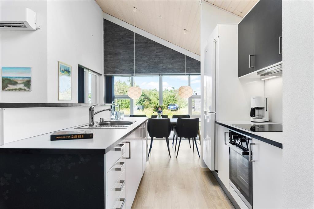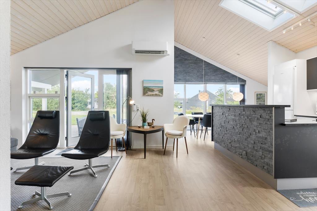 Når du træder ind i dette sommerhus, bliver du mødt af en lys og indbydende atmosfære, hvor moderne indretning og kvalitetsmøbler går op i en højere enhed. Stuen er det naturlige samlingspunkt, hvor komfortable møbler og en hyggelig brændeovn skaber en perfekt ramme om afslappede aftener. Over køkkenet er der store tagvinduer, som lukker masser af dagslys ind og giver rummet en dejlig atmosfære, mens du tilbereder måltiderne. Der er god plads omkring spisebordet, hvor familie og venner kan samles til hyggelige stunder. Sommerhuset er desuden udstyret med både et badeværelse og et praktisk gæstetoilet. På badeværelset kan du forkæle dig selv med en tur i det lækre spabad til to personer eller nyde en afslappende saunaoplevelse efter en dag fyldt med aktiviteter.