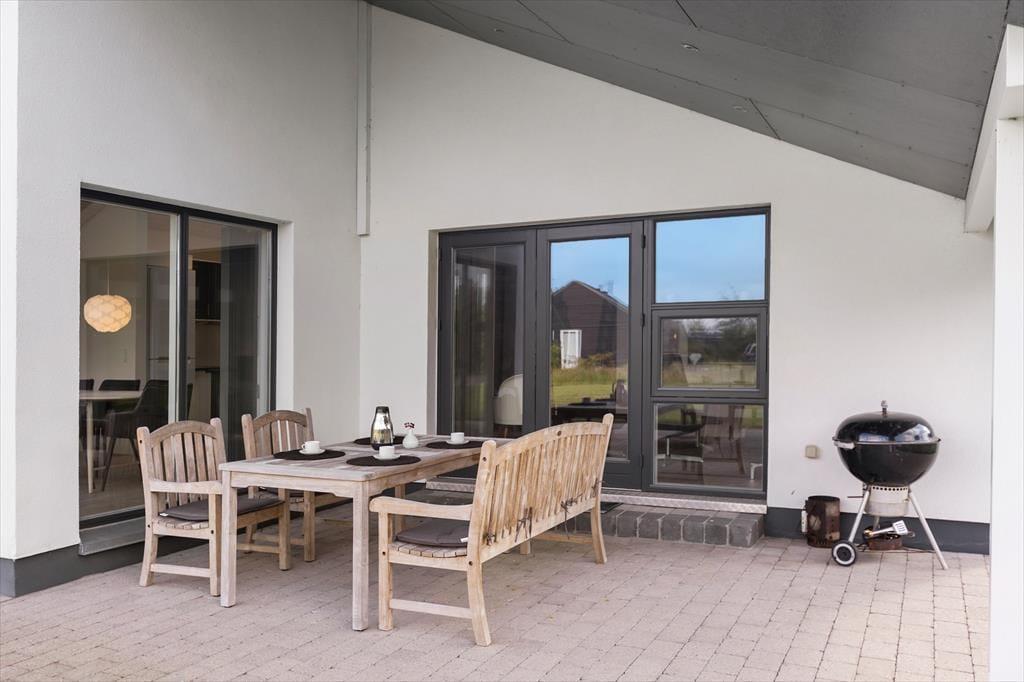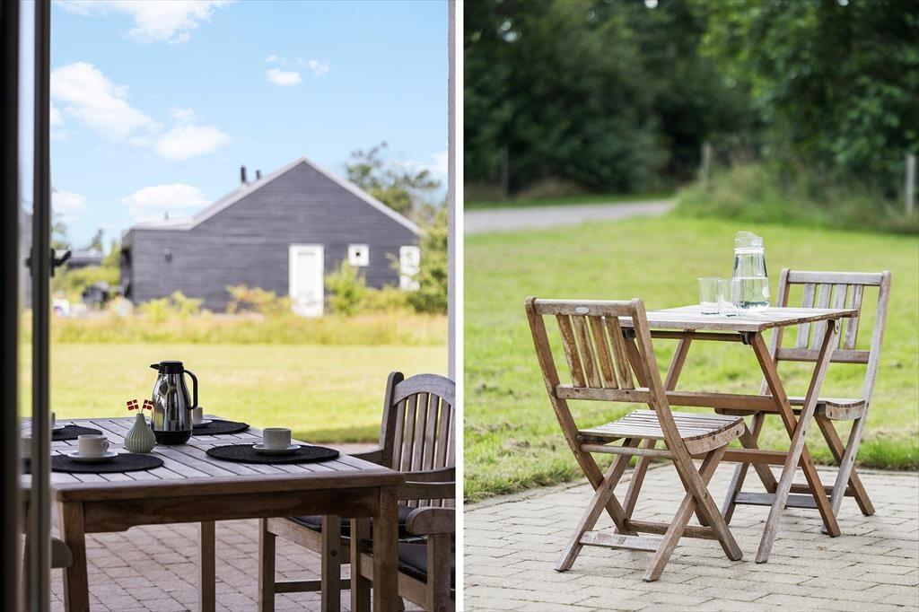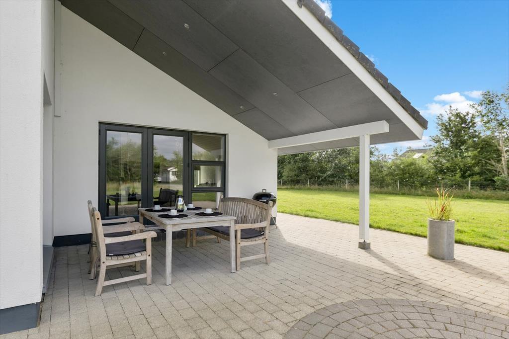En af de helt store fordele ved dette sommerhus er den hyggelige, overdækkede terrasse, hvor du kan slappe af i fuldstændig uforstyrrede omgivelser. Terrassen er perfekt til morgenkaffen, frokosten eller en hyggelig grillaften, uanset vejret. Du kan også nyde solen på de komfortable havemøbler, mens børnene leger i haven. Det store udeområde er ideelt til leg og afslapning for både børn og voksne.