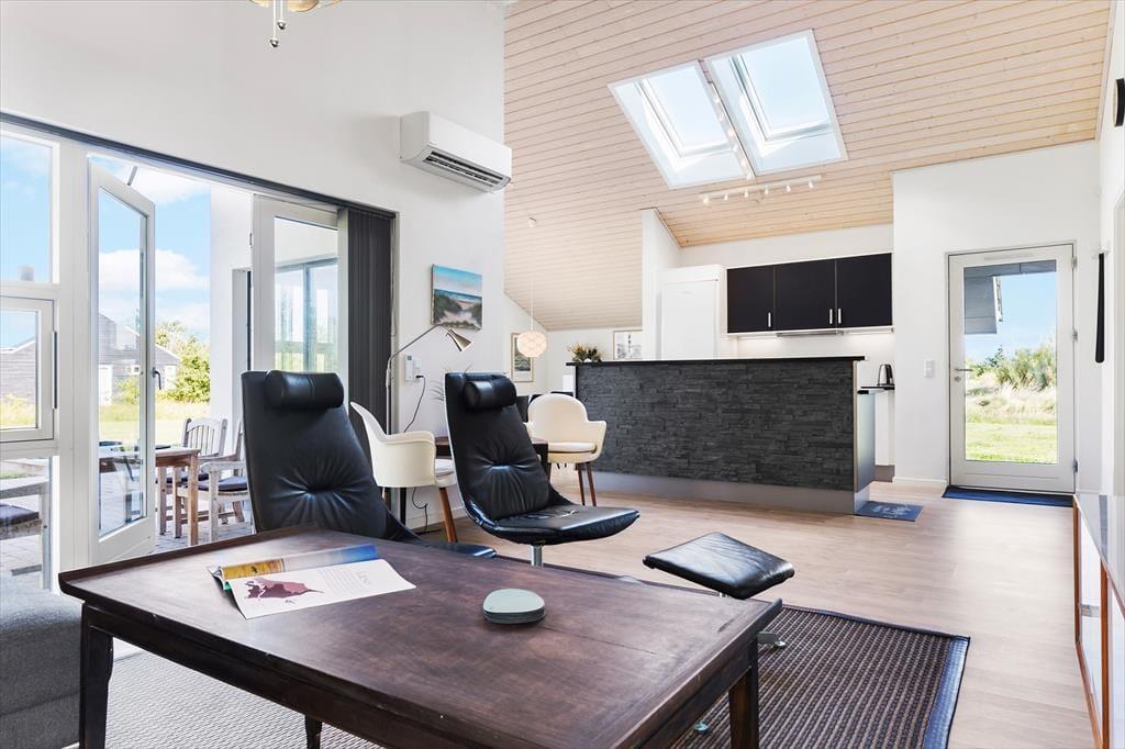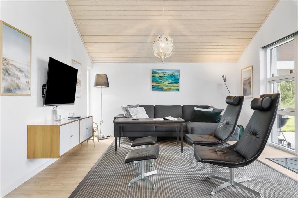 Ønsker du en ferie i et moderne og velindrettet sommerhus, hvor der tilmed at sjove og gratis faciliteter lige uden for døren? Så er dette sommerhus på Kronvildtvej 208 i Tranum Ferieby det ideelle valg. Med sine stilfulde møbler, en dejlig overdækket terrasse og lækre wellness-faciliteter er her alle muligheder for en vellykket ferie.