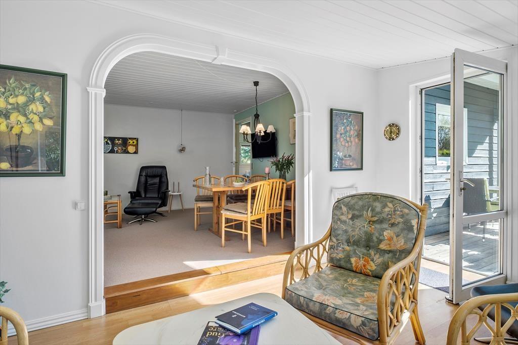 Indenfor bliver du mødt af en hyggelig og funktionel indretning, der emmer af dansk sommerhuscharme. Huset er lyst og velholdt, og stuen og køkkenet ligger i åben forbindelse, så det er let at samles om madlavning, måltider og hyggelige stunder. Her er der plads til både afslapning og samvær med familie og venner. De to soveværelser er indrettet med fokus på komfort, så du kan vågne veludhvilet til lyden af fuglesang. Badeværelset er praktisk og funktionelt, og med den enkle indretning er der skabt en ramme, der gør det let at slappe af og nyde ferien.