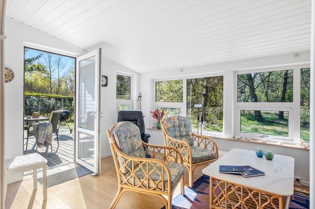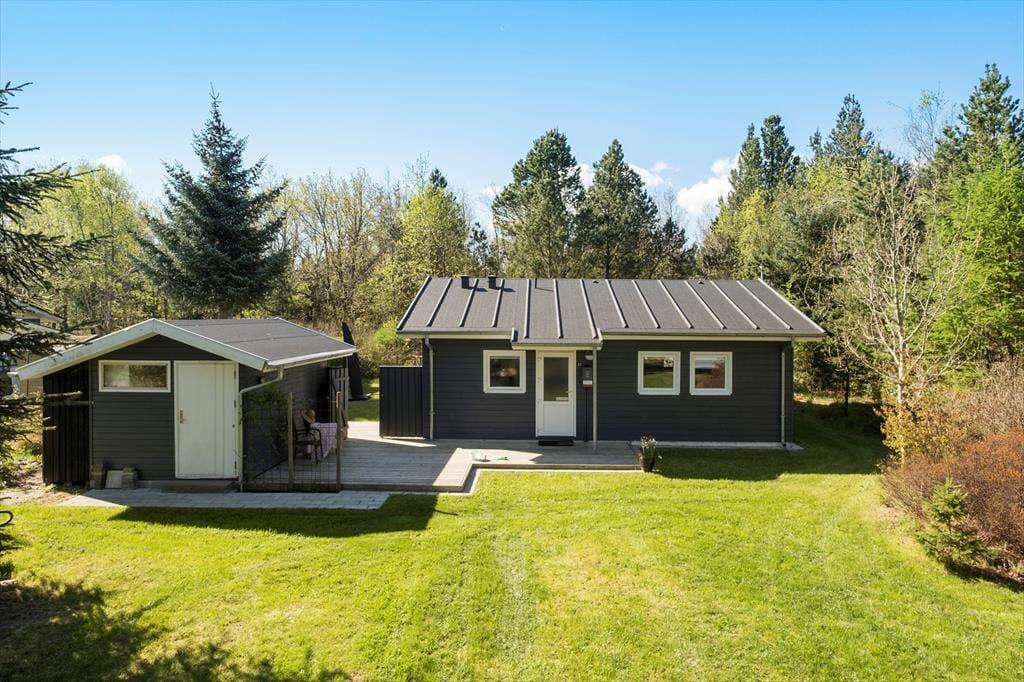 Haven omkring sommerhuset er et sandt paradis for naturelskere. Dyrelivet er enestående, og de opsatte foderstationer tiltrækker både egern og et væld af fuglearter, som du kan betragte direkte fra terrassen. Terrassen er desuden godt afskærmet mod vinden, så du kan nyde morgenkaffen eller lange sommeraftener i ro og mag – uanset vejret. Hvis du medbringer din cykel, kan den nemt sættes i tørvejr i skuret, så den er klar til eventyr i området.