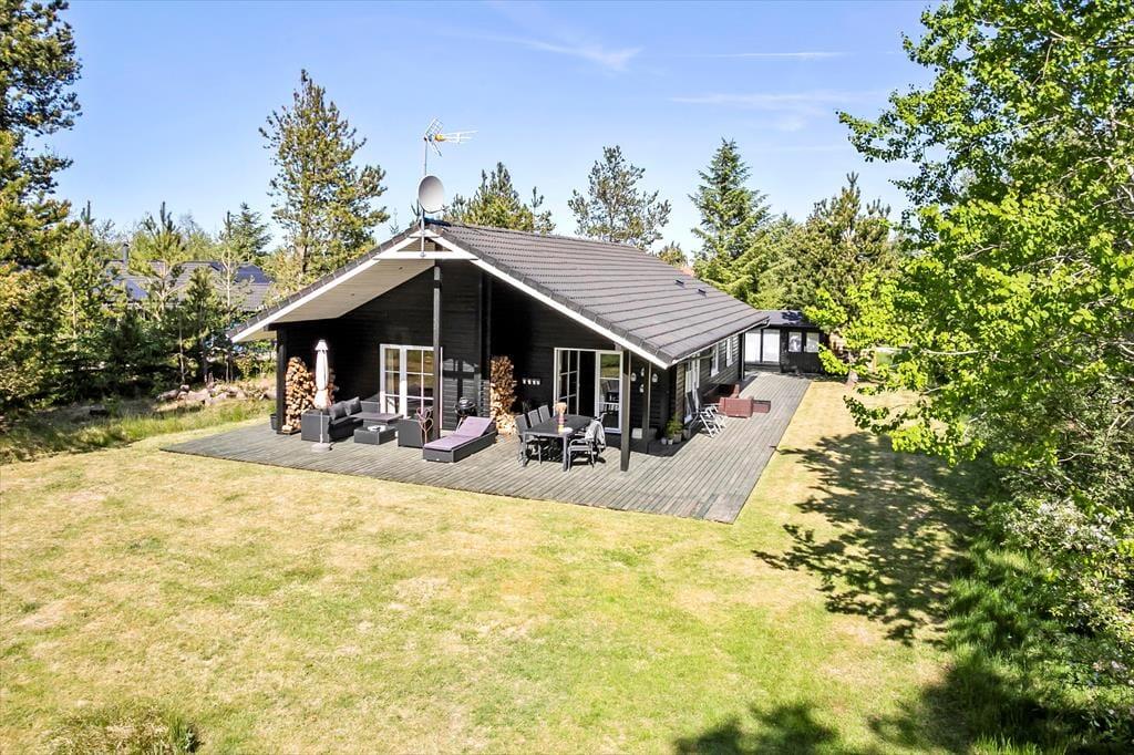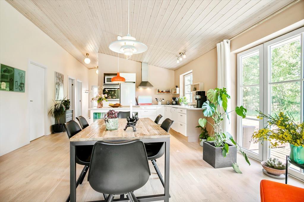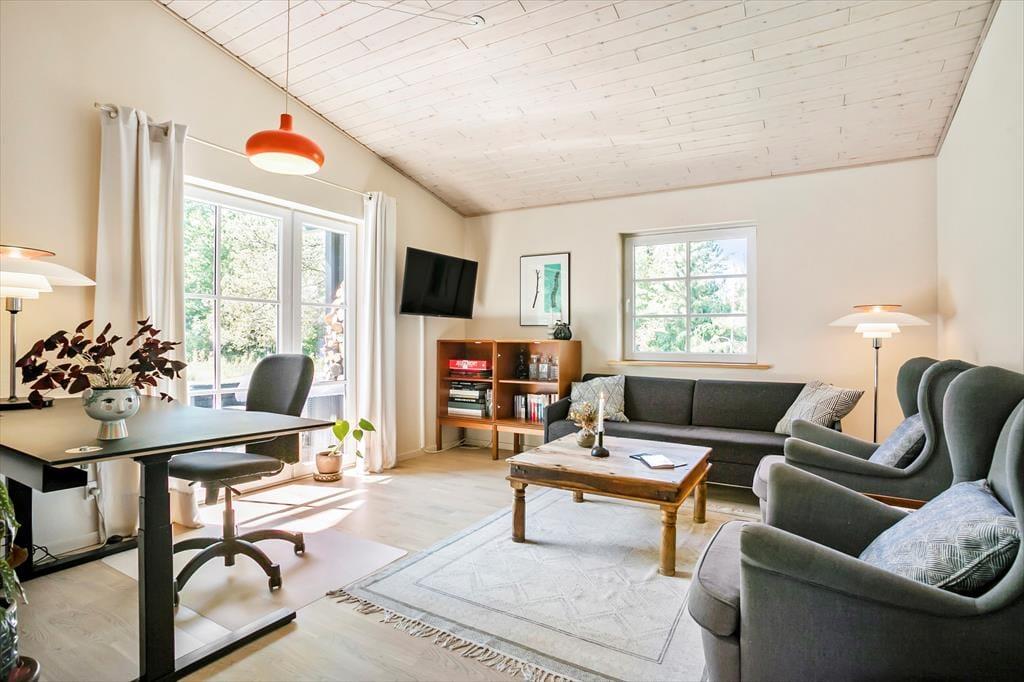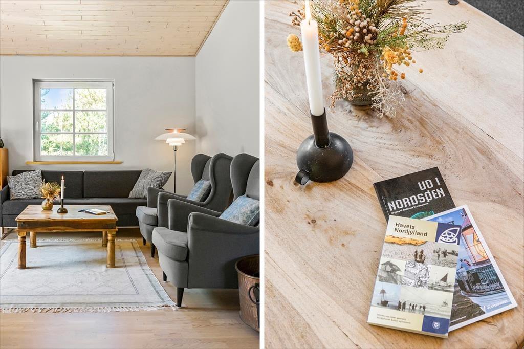 På en lille, lukket vej i Tranums naturskønne omgivelser finder I dette lækre sommerhus, der har plads til seks personer. Huset er velindrettet og har en skøn atmosfære, og detaljer som badeværelsets spabad og sauna er med til at gøre feriedagene ekstra behagelige.