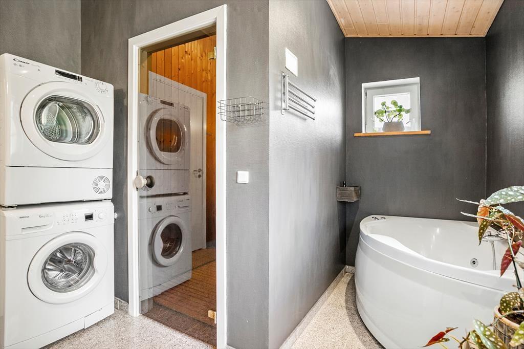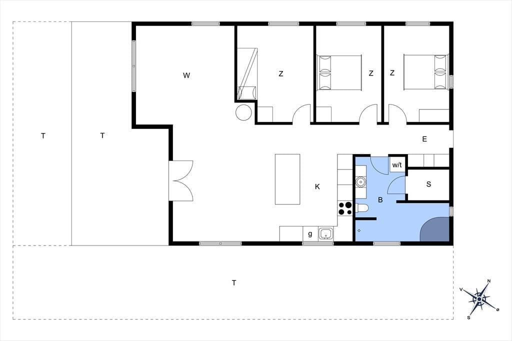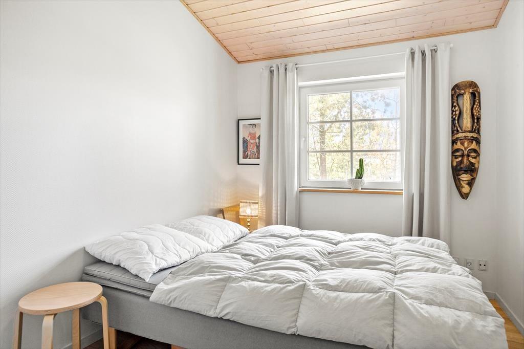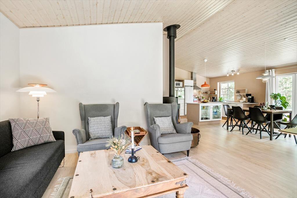 Sommerhuset, der er opført i 2006, har en glimrende indretning og hele 105 m2 til rådighed. Tre soveværelser ligger side om side i den ene ende af huset – og hvis I har brug for flere sengepladser, er der mulighed for at rede op på sovesofaen i stuen. I løbet af dagen fungerer stuen som et skønt opholdsrum. Brændeovnen kan I tage i brug, hvis det er køligt udenfor, for det må være topmålet af hygge at sidde med en varm kop te nær flammerne. Spisebordet er et dejligt samlingspunkt, når I har lavet mad i det moderne og veludstyrede køkken, og hvis der virkelig skal slappes af, er det herligt at have både spabad og sauna på badeværelset.