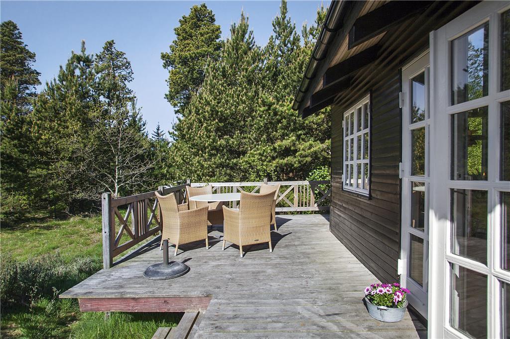 Huset ligger lige op til et skovområde, så det er nemt at udnytte de gode muligheder for at komme helt tæt på naturen og områdets dyre-og fugleliv. Grunden er stor og velholdt og har plads til leg og aktiviteter, til de yngste er her gynge og plads på grunden. Fra stuen har man udgang til en stor og dejlig terrasse, som ligger lidt hævet fra grunden, og mellem hovedhuset og det ene anneks er endnu en terrasse, så alle muligheder for mange skønne udendørs timer er til stede.