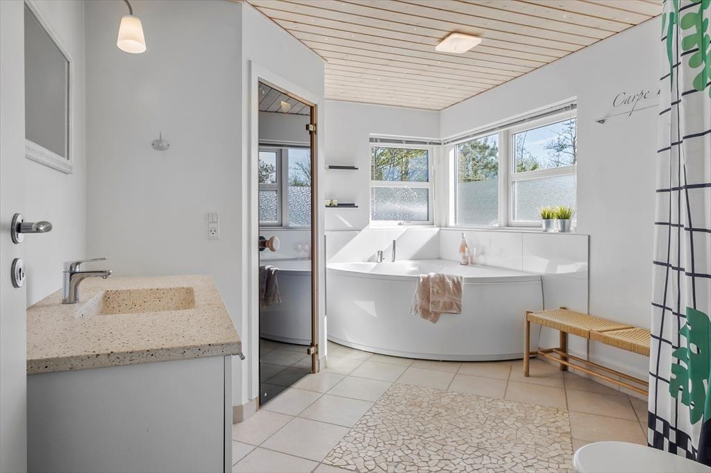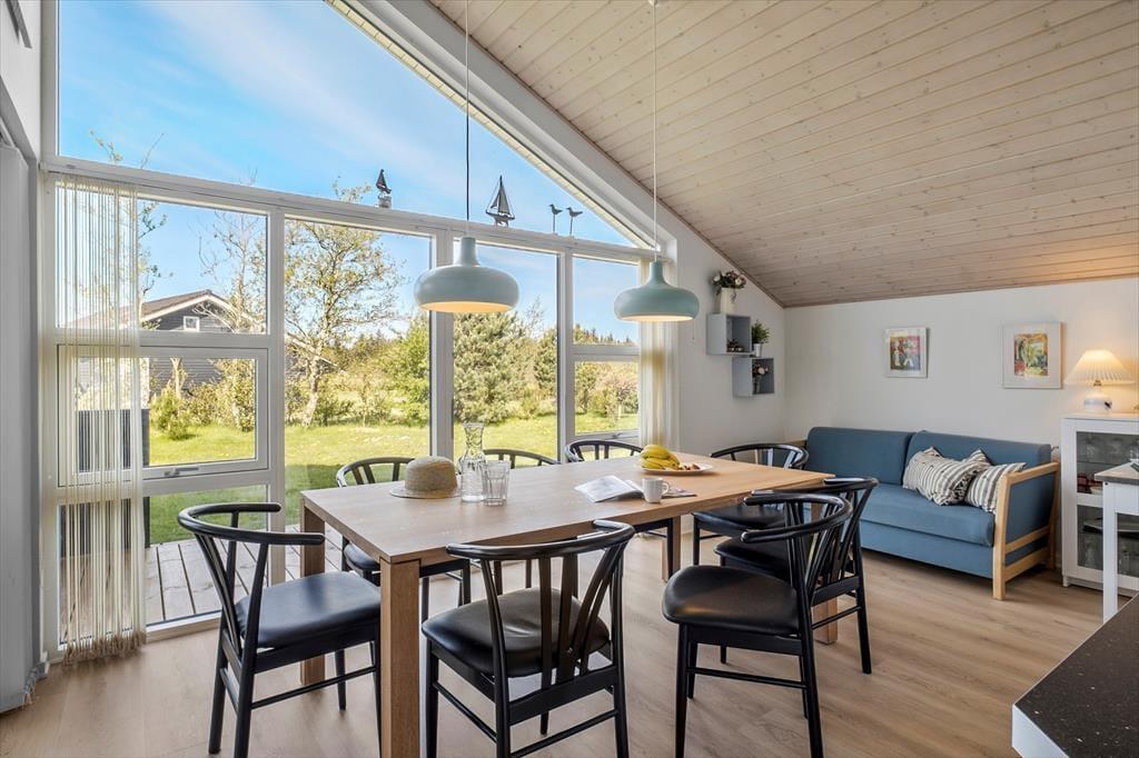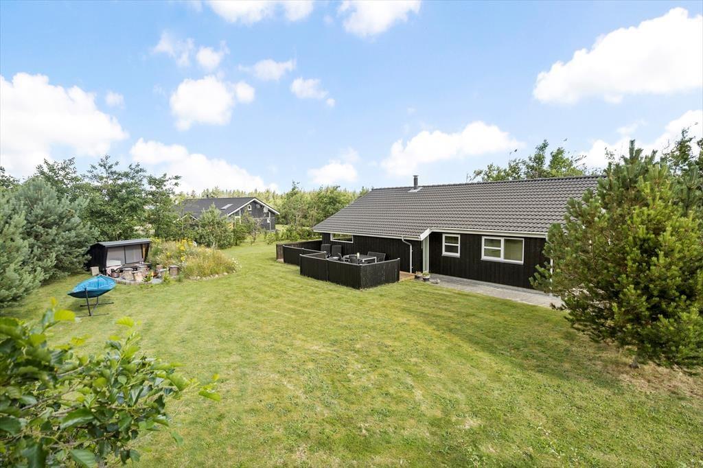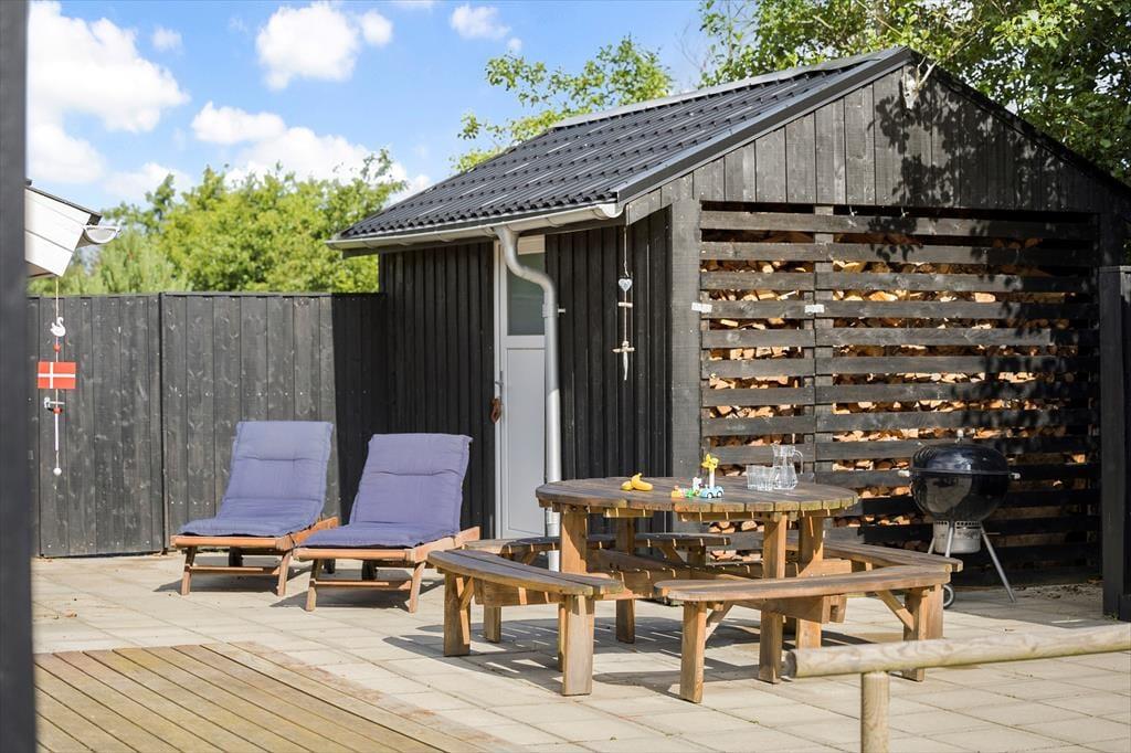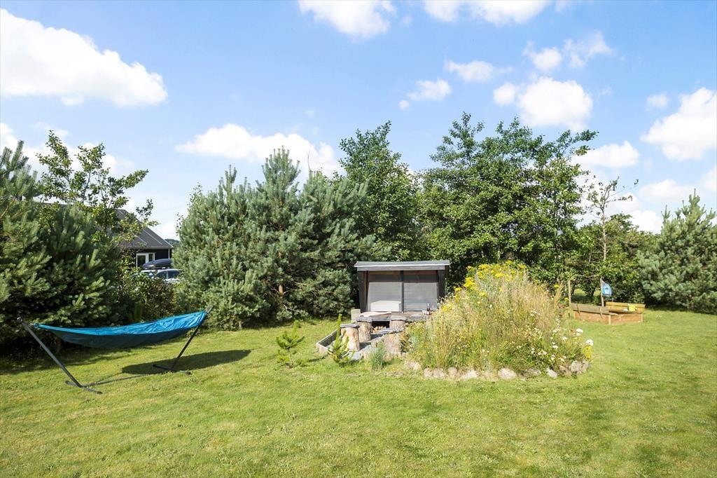 Spabadet og saunaen, stuens store spisebord og bålstedet med tilhørende shelter: Alt det og meget mere er med til at gøre dette flotte sommerhus til en fantastisk base for både børn og voksne. De attraktive omgivelser spiller selvfølgelig også en vigtig rolle, for det er herligt at have fri adgang til de mange sjove fællesfaciliteter i Tranum Ferieby.