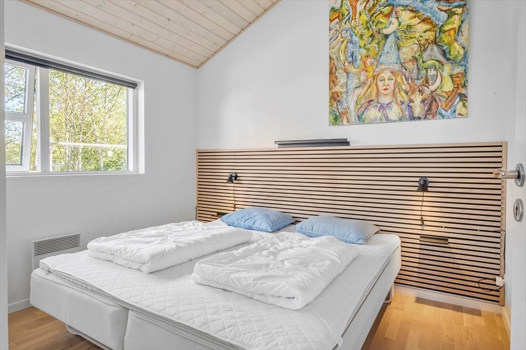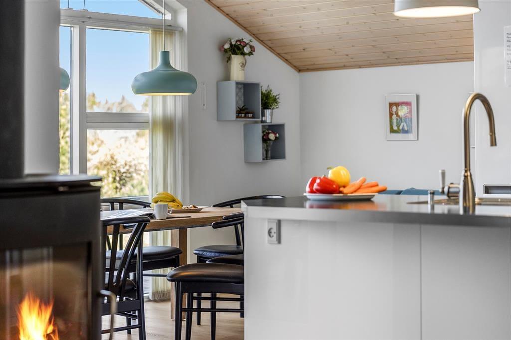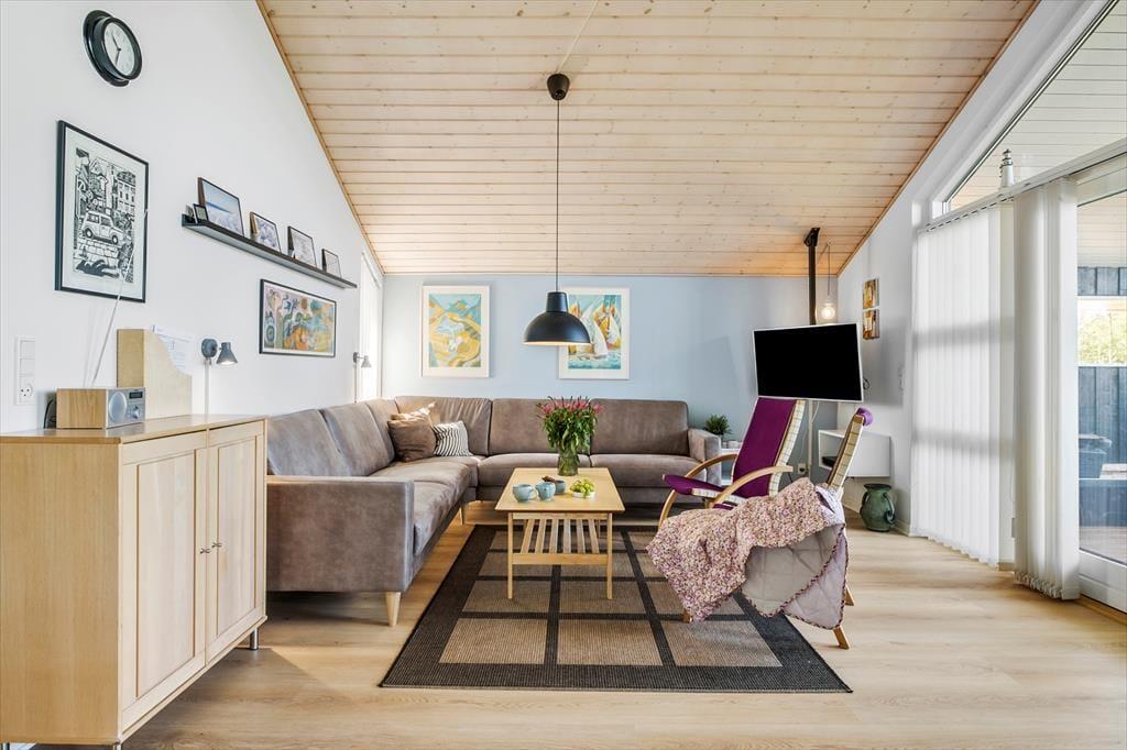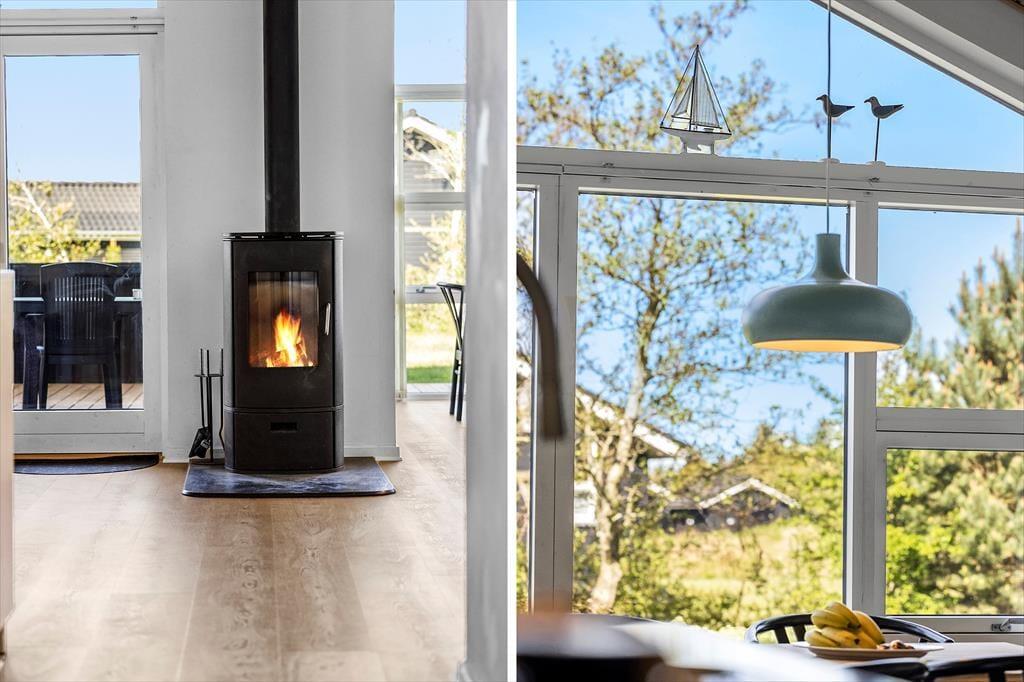 Hvad trænger I mest til, når ferien begynder? Drømmer I om at koble af i et spabad eller en varm sauna, eller skal der skrues op for leg, hygge og nærvær med brætspil og varm kakao nær brændeovnen? Her i det 101 m2 store sommerhus kan begge scenarier nemt virkeliggøres, og I kan også se frem til lækre middage og filmaftener i hjørnesofaen. Fra det veludstyrede køkken har I åben forbindelse til en dejlig spiseplads og en hyggelig stue med sofaarrangement, og i den anden ende af huset finder I tre værelser, et gæstetoilet og et wellness-badeværelse. I har også adgang til en hems med ekstra sovepladser, så det er muligt at være otte personer i huset.