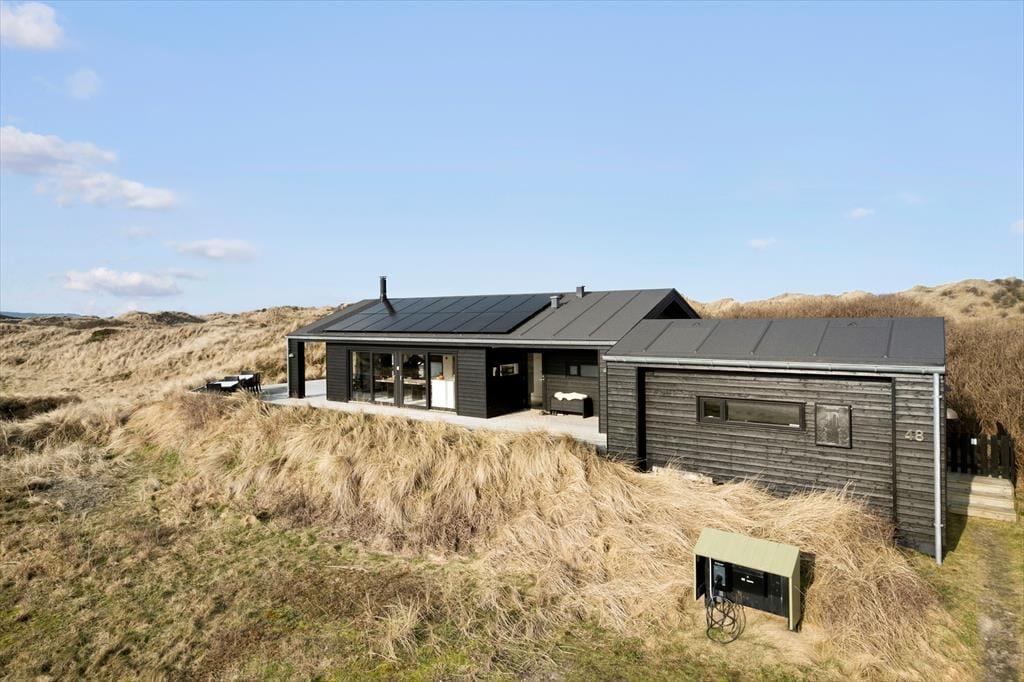 Du kan se frem til en uforglemmelig ferie på Redningsvejen 48 ved Tranum Strand. Dette sommerhus er nemlig et særdeles lækkert og stilfuldt eksemplar med et stort terrassedæk og udendørs spabad – men det allerbedste er nu næsten naturomgivelserne, for her bor du med fantastisk udsigt til Fosdalen og Vesterhavet som nærmeste nabo.