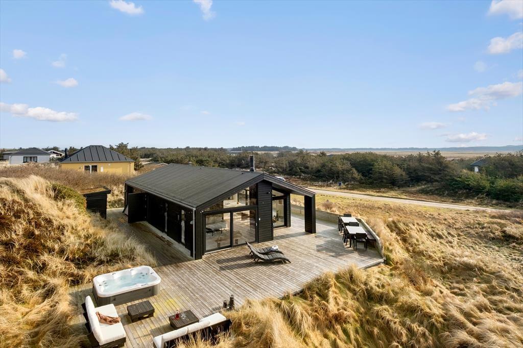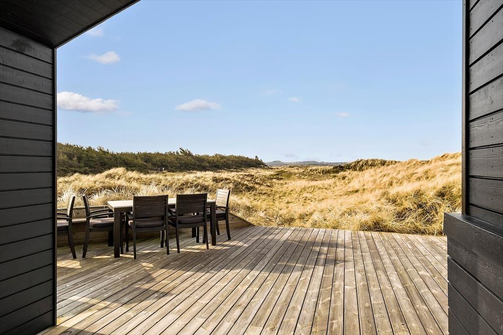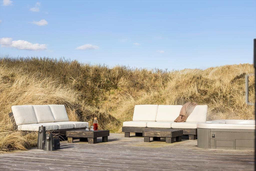 Fra terrassemiljøets spaområde kan du følge en sti op over klitterne og lige ned på Tranum Strand. Der er ikke langt at gå, så hvis du foretrækker et opkvikkende havdyp frem for et spabad, kan det sagtens lade sig gøre – og så kan du endda få et brusebad i det fri, når du kommer tilbage til huset. Sommerhuset ligger roligt placeret i bunden af den lukkede grusvej, så det er det perfekte feriested, hvis du trænger til et afbræk fra en travl hverdag. Samtidig har du ikke mere et kvarters gang til de nærmeste spisesteder og den lokale iskiosk ved Tranum Strand, hvis du får lyst til at blive forkælet med et godt måltid mad, og ved Slettestrand kan du prøve de fantastisk MTB-spor eller begive dig til fods ind i Svinkløv Klitplantage.