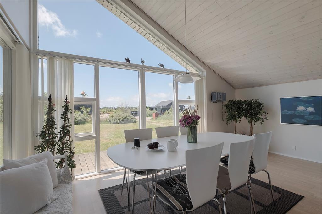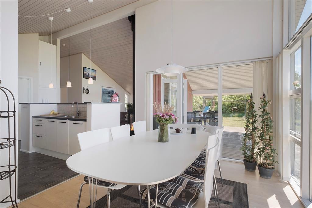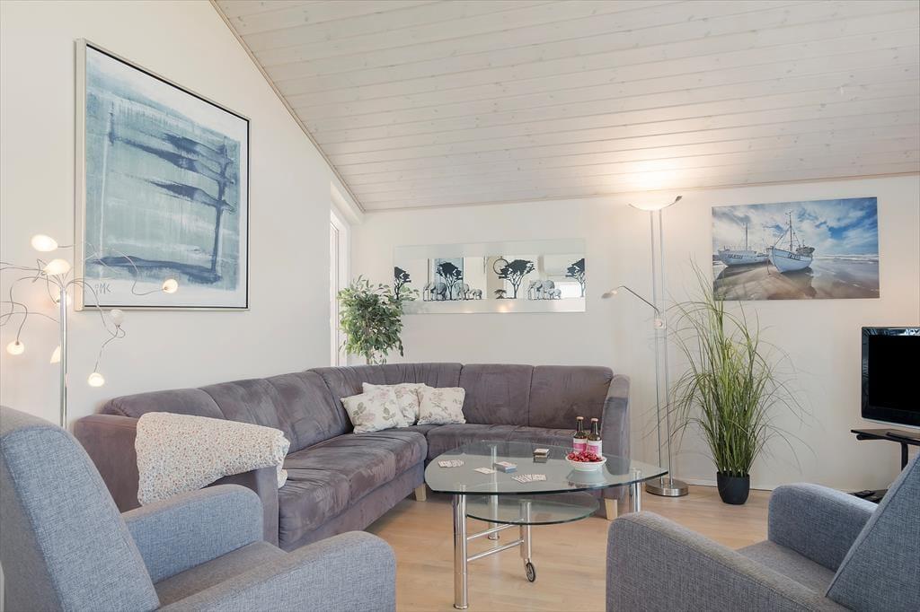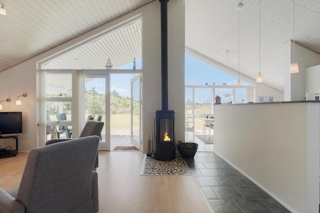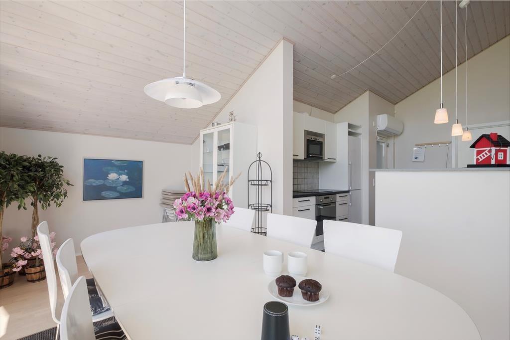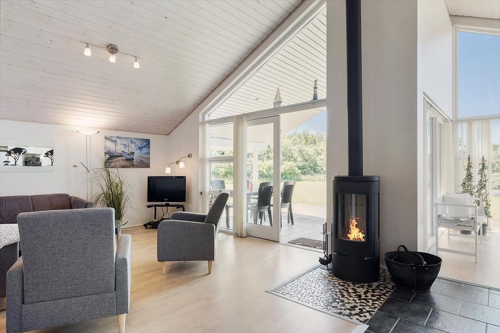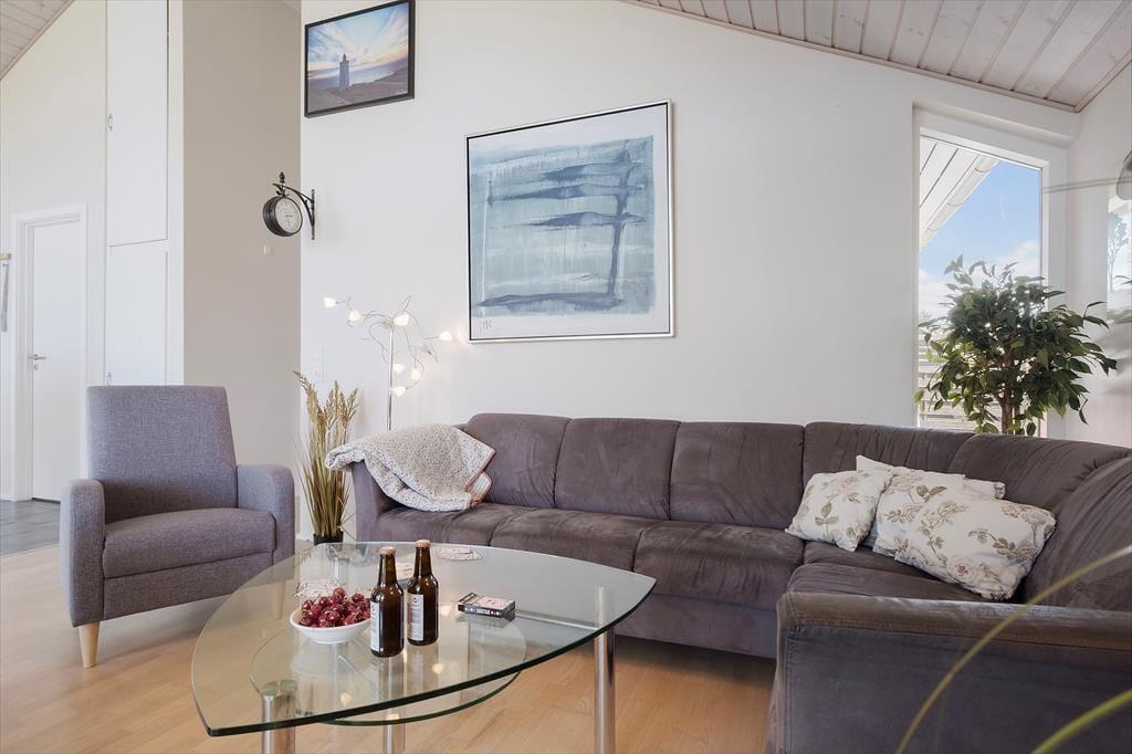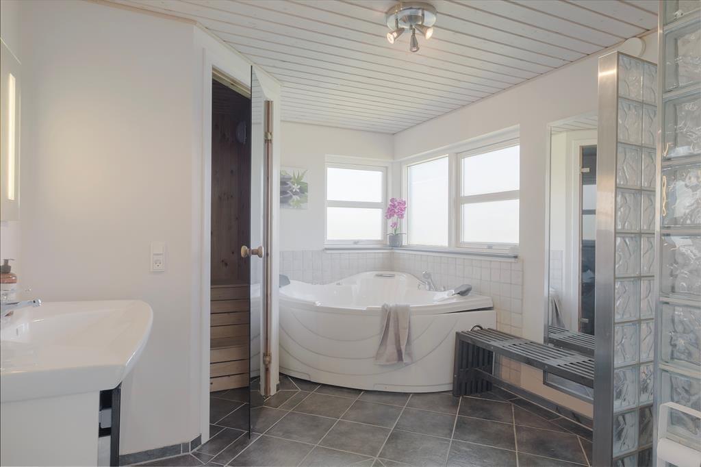 Sommerhusets flotte og velindrettede opholdsrum er det oplagt samlingspunkt, for her er godt med plads, et smukt lysindfald og pænt møblement. Brændeovnen står klar til at sprede hygge og varme i aftenmørket, og når solen skinner udenfor, gør havedørene det nemt at komme ud på terrassen. Det åbne køkken giver dig en dejlig ramme om de fælles madlavningsstunder, og hvis I er i det legesyge hjørne, kan du og familien dyste i bordfodbold, airhockey og pool. Planløsningen byder på et stort badeværelse og et mindre gæstetoilet, og særligt det førstnævnte er værd at bemærke, for her bliver du forkælet med både spabad og sauna. Soveværelser er der tre af, og på hemsen er der yderligere sovepladser, så der er plads til alle dine nærmeste.