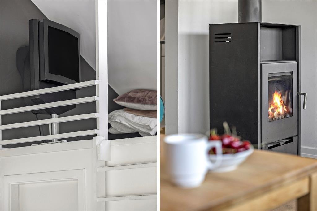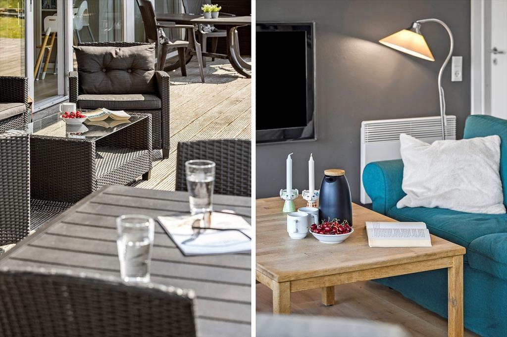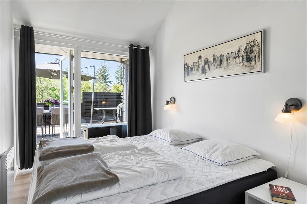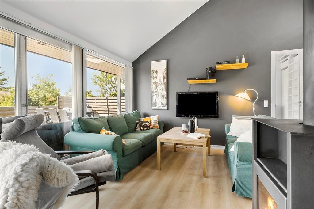 Når du træder ind i dette sommerhus, mødes du af en lys og behagelig atmosfære. Stuen er indrettet med komfortable møbler og en hyggelig brændeovn, der indbyder til afslapning efter en dag fyldt med oplevelser. Det åbne køkken ligger i forlængelse af opholdsrummet, så du kan nyde samværet, mens du tilbereder måltider. Omkring det rummelige spisebord er der god plads til hyggelige middage og spil med familie og venner. Sommerhuset byder desuden på tre soveværelser, hvor du kan trække dig tilbage og få en god nats søvn.