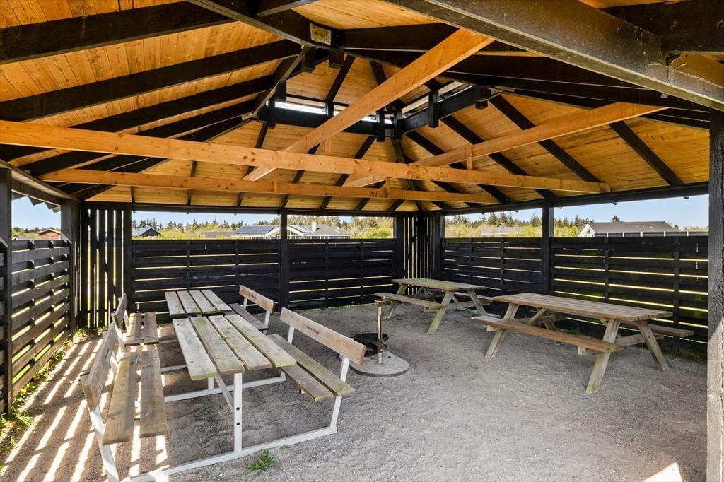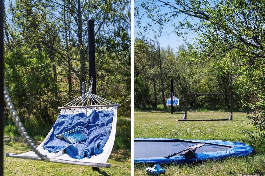 Sommerhuset ligger i et helt unikt område, hvor fællesarealet spiller en stor rolle. Her er der virkelig mulighed for en aktiv ferie for alle generationer og I kan frit og ubegrænset vælge mellem følgende aktiviteter; Fodboldgolf med 9 huller, nyanlagt minigolfbane fra 2022 samt krolfbane med krokethuller og Disc Golf. Der er mange muligheder for fodbold, både på græs og på streetbanen, hvor der også findes basketnet. Har I lyst til beachvolley er dette også en mulighed og skal formen holdes ved lige, er der flere forskellige fitnessstationer. Til de mindste gæster findes der en kæmpe sandkasse, gynger, legetårn, rutsjebane, legehus, svævebane, balancebom, edderkoppenet og vippe. Efter dagens aktiviteter kan I slappe af i grillhytten, hvor I har mulighed for at lave bål, eller I kan nyde en aftentur på områdets vandre- og cykelsti der bringer jer rundt i hele området.