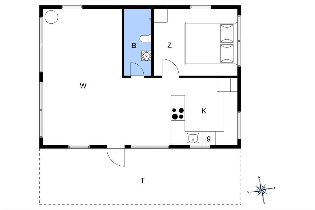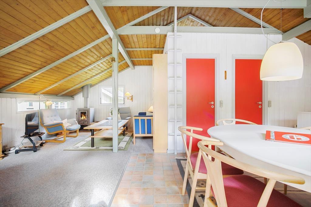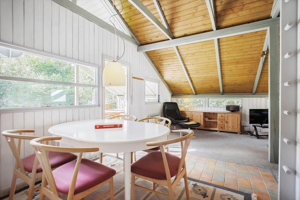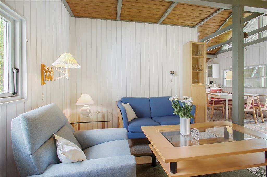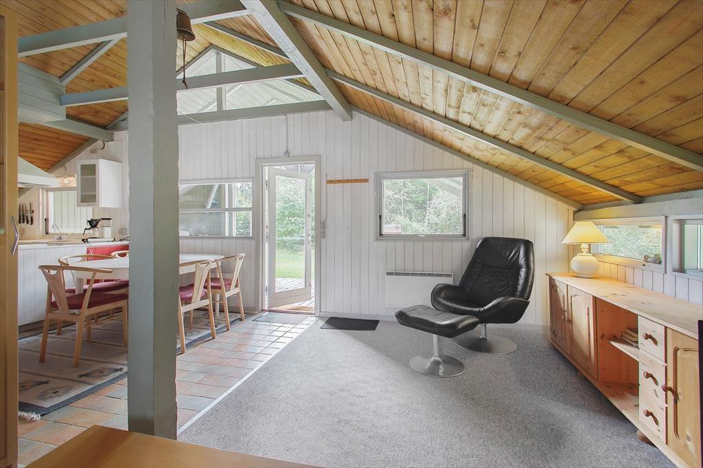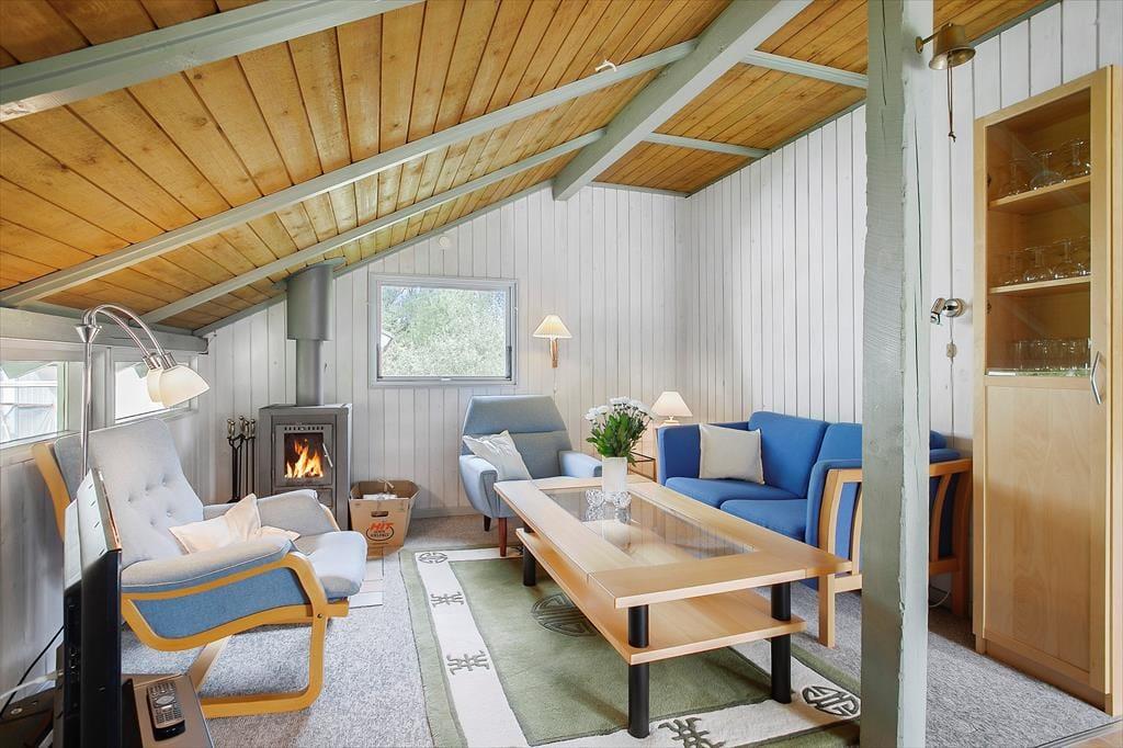 Med loft til kip, hanebjælker og trælister på væggene er sommerhusstemningen helt i top inden døre. Stuens brændeovn er også et af husets charmetræk – og her skal det nævnes, at brænde er inkluderet i lejen. Hovedhuset består af en stue med integreret køkken, et badeværelse og et soverum med dobbeltseng. Øvrige gæster kan pakke feriekufferten ud i det nyere anneks, som rummer endnu et badeværelse og to soverum med henholdsvis en dobbeltseng og en køjeseng.