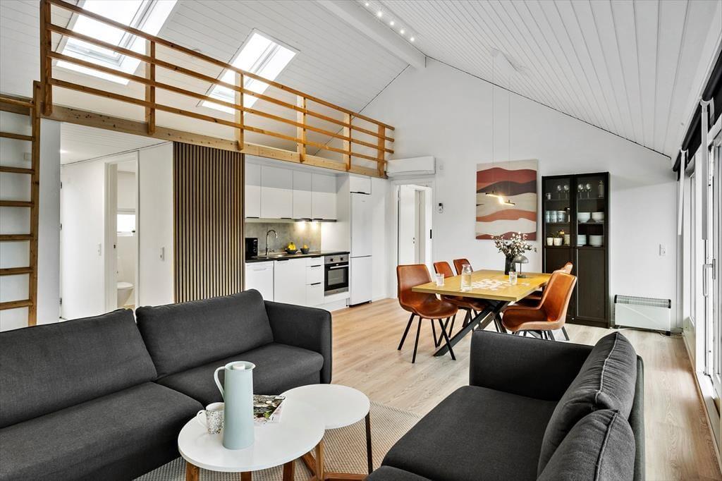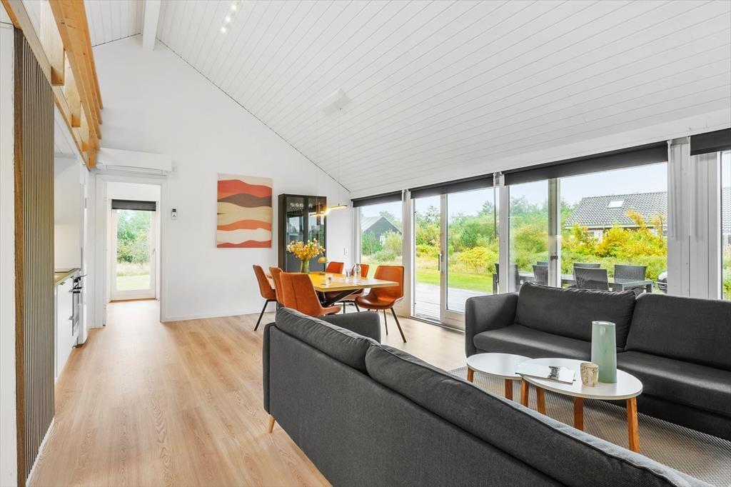 Indenfor mødes du af et lyst og moderne indrettet sommerhus, hvor der er kræset for detaljerne. De lyse materialer, det enkle design og den gennemtænkte indretning giver en rolig og harmonisk atmosfære, som straks får dig til at slappe af. Stuen og køkkenet ligger i åben forbindelse, så du let kan være en del af samtalen, mens feriemåltiderne bliver tilberedt. Her kan du nyde hyggelige aftener med brætspil, film eller blot udsigten til haven gennem de store vinduespartier. Huset har tre gode soveværelser, der alle er indrettet med komfort for øje – perfekt til både familieferie og ophold med venner.