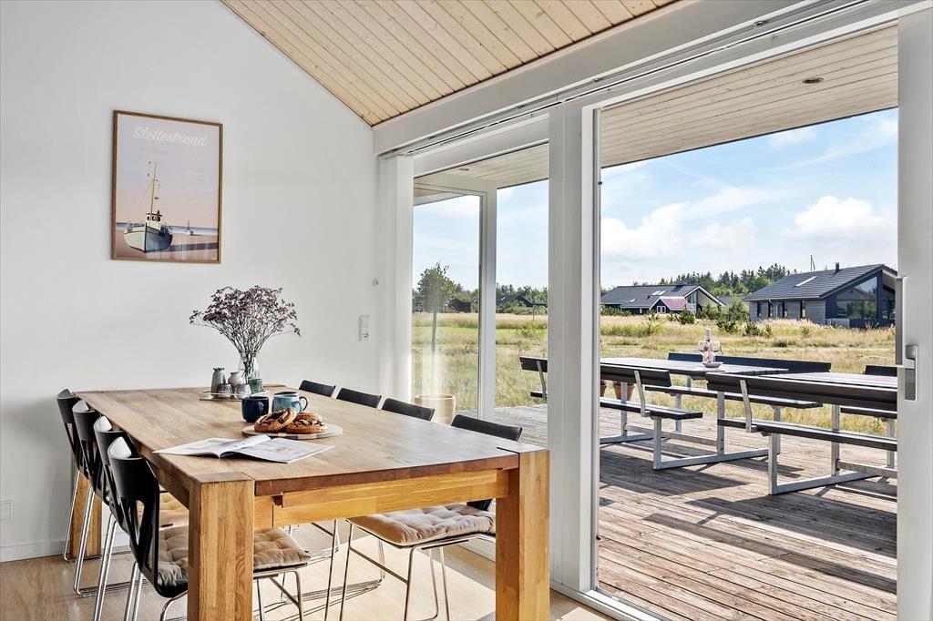 Indenfor venter en varm atmosfære, hvor du hurtigt mærker, at her kan skuldrene falde ned. Stuen er lyst indrettet og indbyder til både hyggelige måltider og afslapning efter en dag ude i naturen. Køkkenet ligger i åben forbindelse med opholdsrummet, så du kan snildt være en del af samtalen, mens du tilbereder feriens livretter. Når dagen lakker mod enden, kan du nyde at trække ind i wellness-afdelingen, hvor spabad og sauna skaber rammerne for ren afslapning. Når trætheden melder sig, venter hyggelige soveværelser og en hems, som gør det let at fordele jer, hvis I er flere familier eller vennepar afsted sammen.