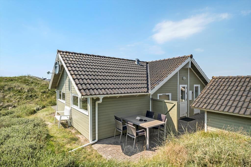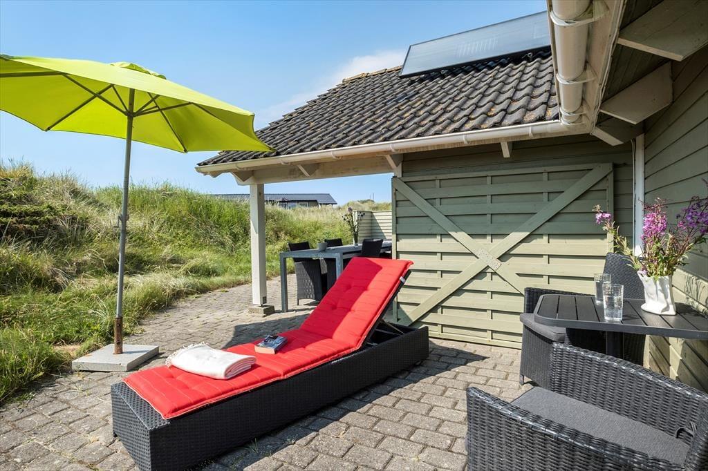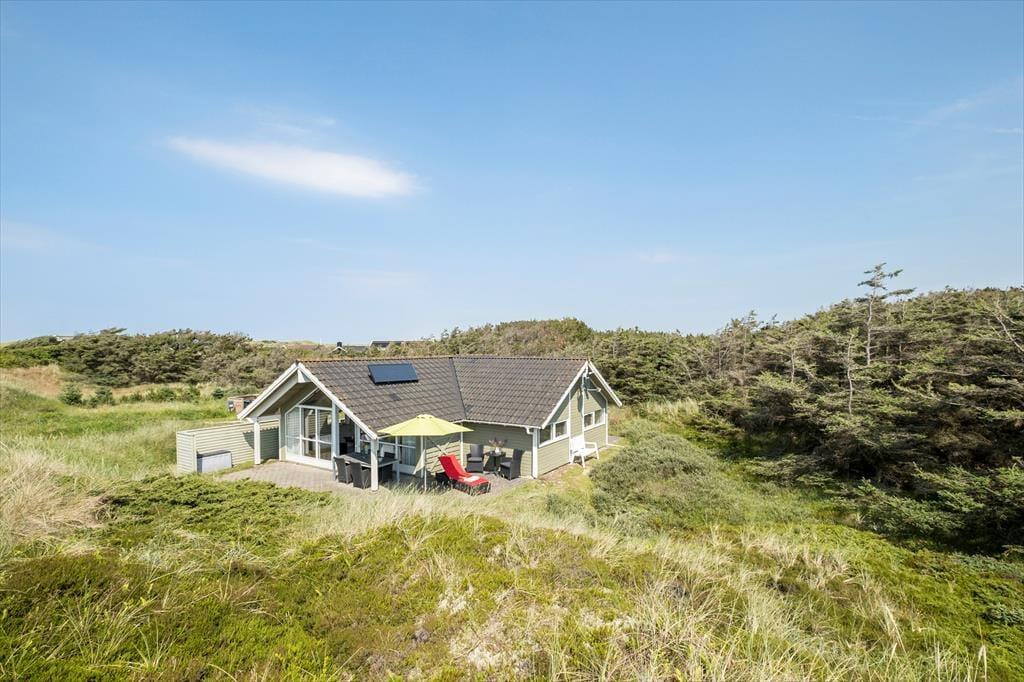 Den flotte og kuperede naturgrund er fyldt med lyng, højt græs og klitter og ligger i komplet fred og ro. Mod sydvest ligger en stor og delvist overdækket terrasse, helt oplagt til at nyde alle de gode soltimer og tilberede det ene lækre grillmåltid efter det andet.
