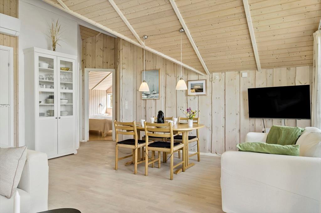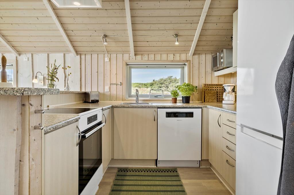 Sommerhuset er lyst og tidssvarende indrettet, og alle vil hurtigt føle sig velkomne og godt tilpas i disse rammer. Det helt centrale rum er det åbne og kombinerede køkken-og opholdsrum med et stort vinduesparti og en dejlig udsigt til naturen udenfor. I det ene hjørne står en flot brændeovn, og med ild i den indfinder den helt rigtige feriestemning sig på ingen tid, og enhver gråvejrsdag er reddet. Derudover råder sommerhuset over to soveværelser med dobbeltsenge og et badeværelse med bruser og vaskemaskine. Medbring gerne pc eller tablet hjemmefra, og brug det trådløse internet til at søge oplysninger om områdets mange attraktioner og seværdigheder. Alt i alt tilbyder dette sommerhus de helt ideelle rammer for den næste par- eller familieferie i Nordjylland.