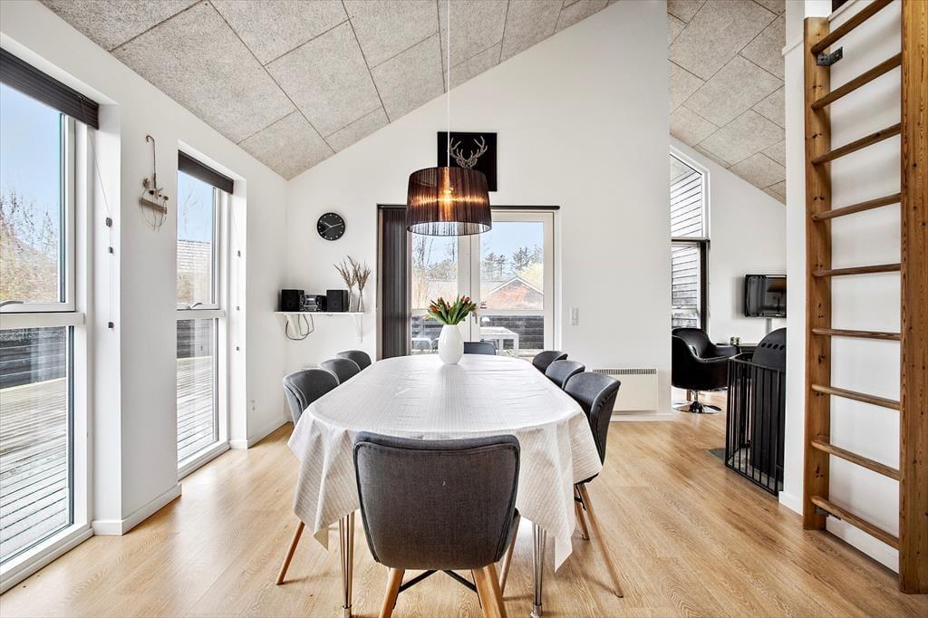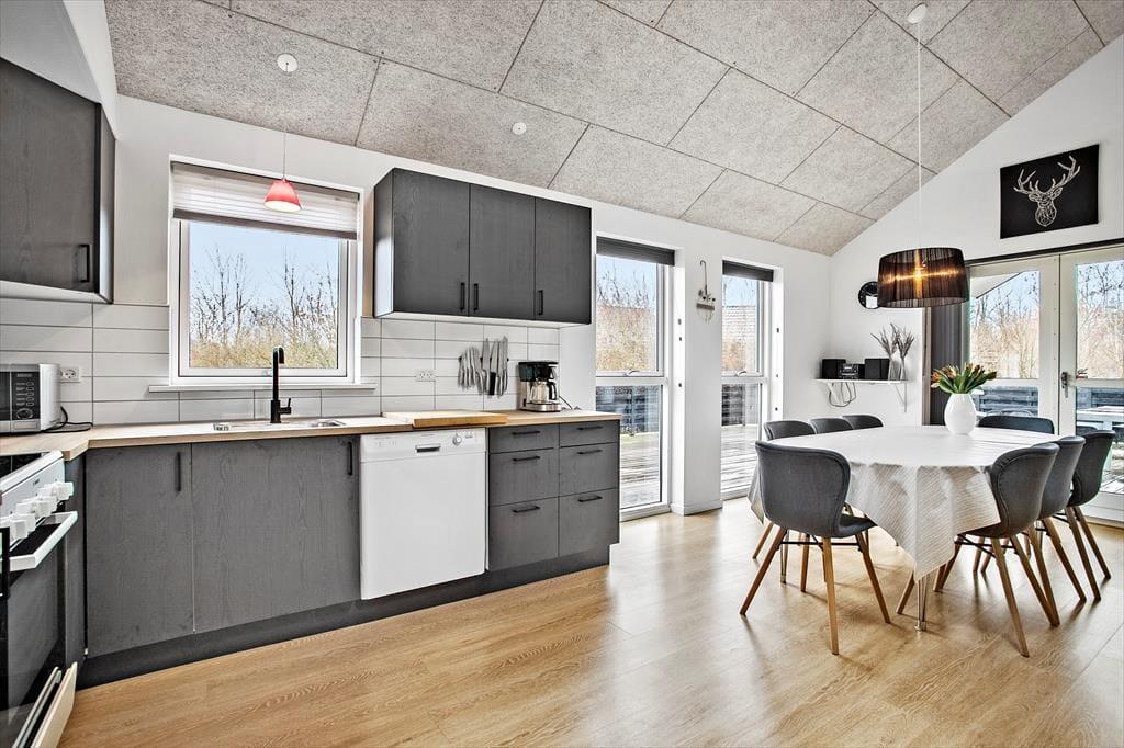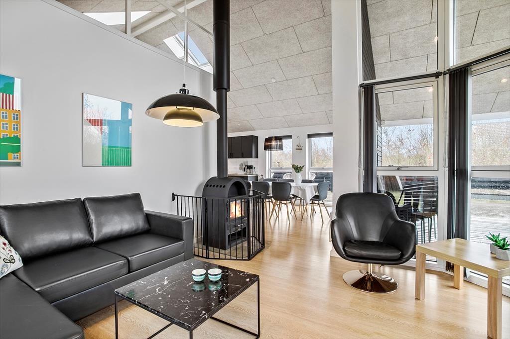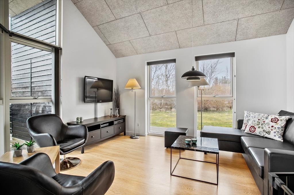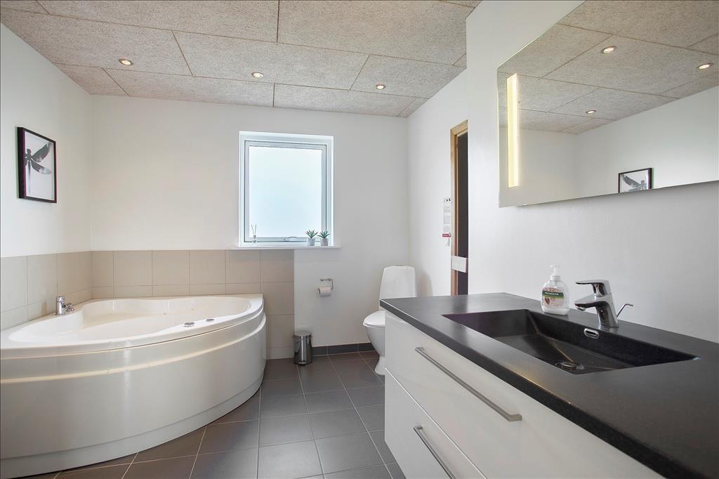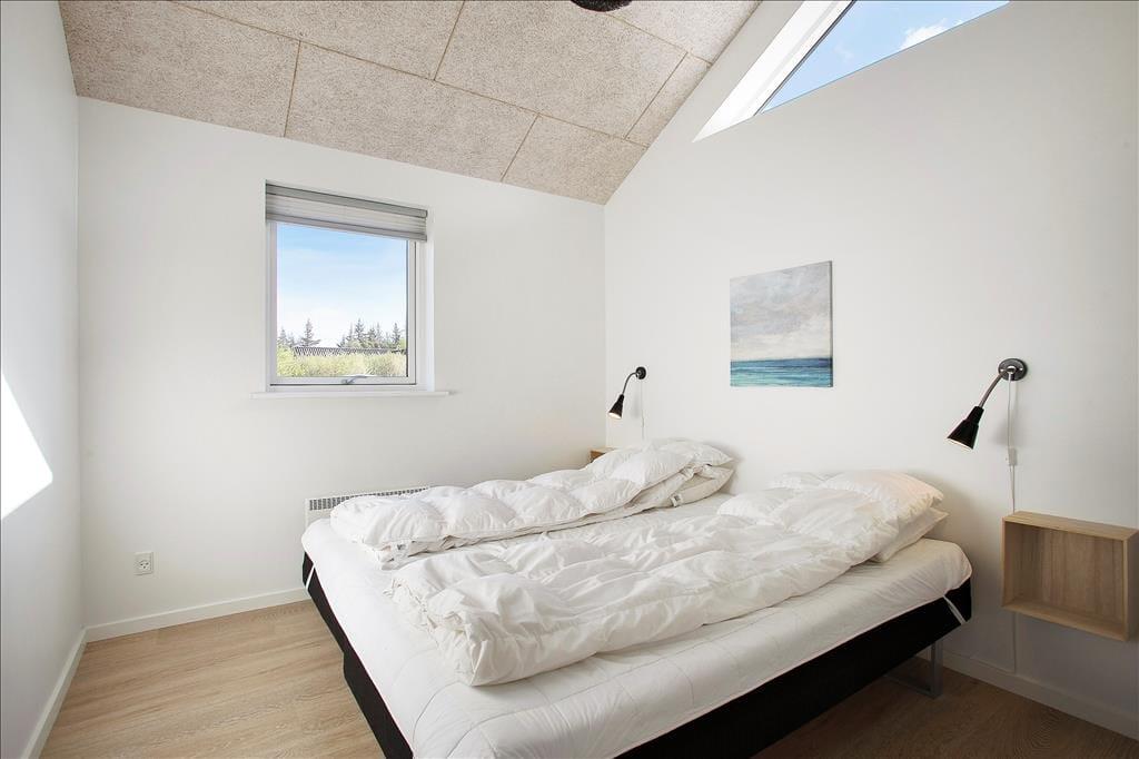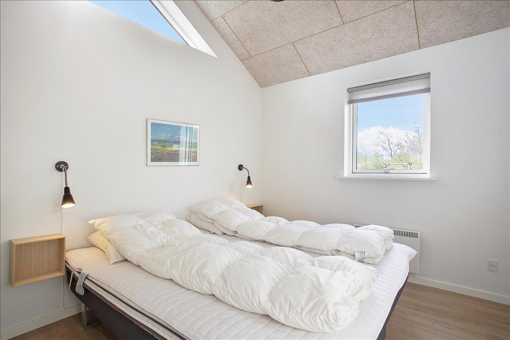Sommerhuset er skønt indrettet med lyse farver og et rigtig godt lysindfald fra de store, sydvendte vinduespartier. Det veludstyrede køkken med spiseplads har åben og nem adgang til stuen med sofagruppe og tv; her kan slappes af med en god film eller en spændende bog, alt imens ilden knitrer lystigt i brændeovnen. Sommerhuset råder over 3 dejlige soveværelser med dobbeltsenge samt en stor og rummelig hems, og det dejlige badeværelse har både spa og sauna, så man kommer bestemt ikke til at mangle noget, når man bor i dette feriehus.