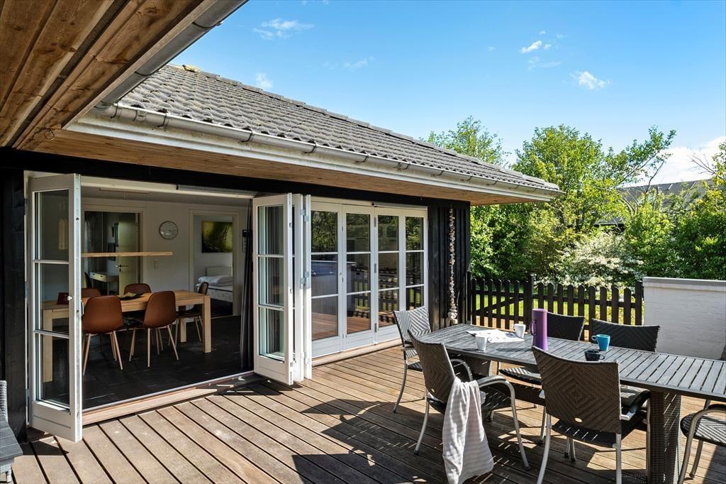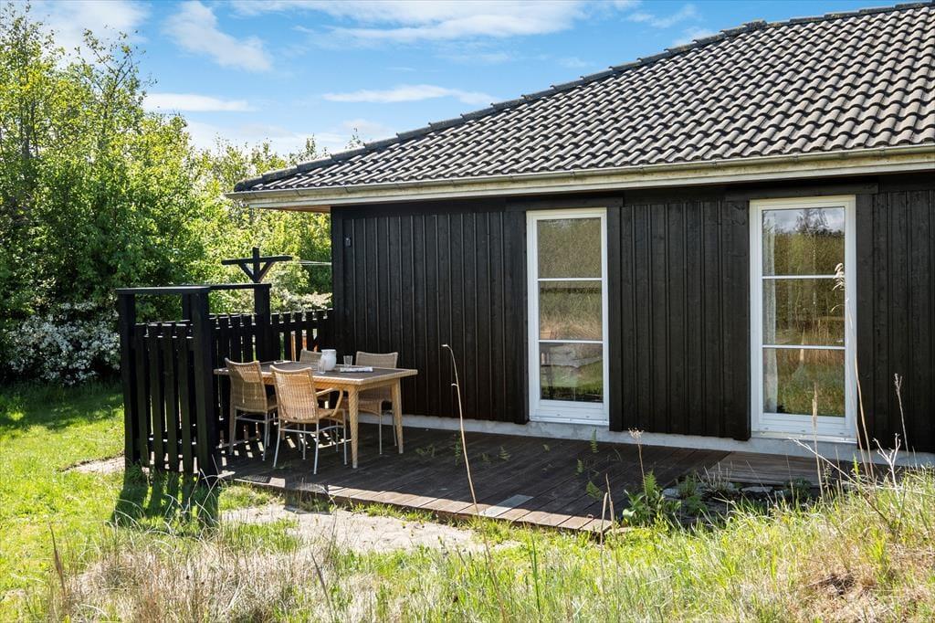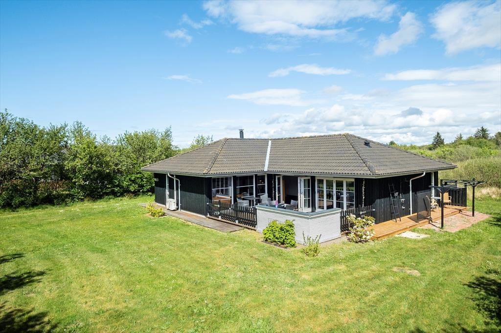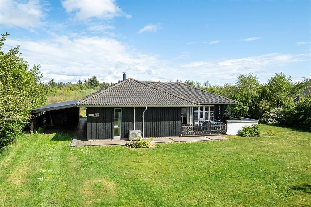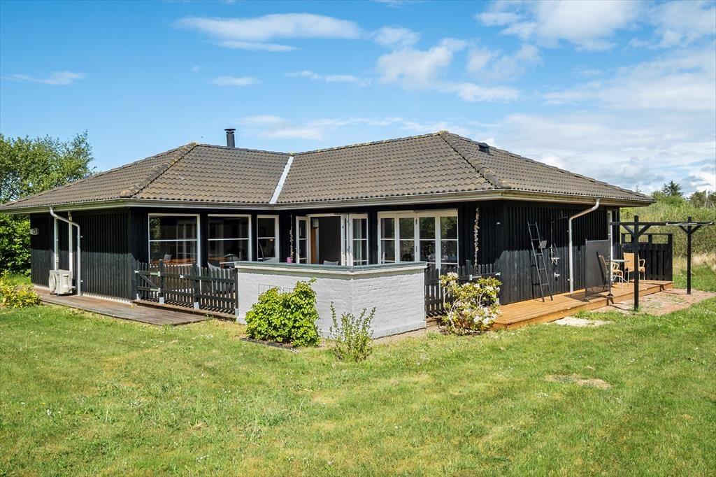 Stuens store glaspartier sørger ikke bare for godt lysindfald og en fin udsigt, men giver jer også direkte adgang til den største af husets to terrasser. Her er der god plads til alle og vil man solbade, kan man ligge ugeneret bag læ muren. Omkring huset er der græsplæne som indbyder til leg eller boldspil og skal der ske noget mere, behøver I bare smutte ned for enden af vejen, hvor et stort lege- og aktivitetsområde breder sig. Her er der aktiviteter og meget mere til glæde for legebørn i alle aldre. Se også områdets egen hjemmeside; www.tranumferieby.dk