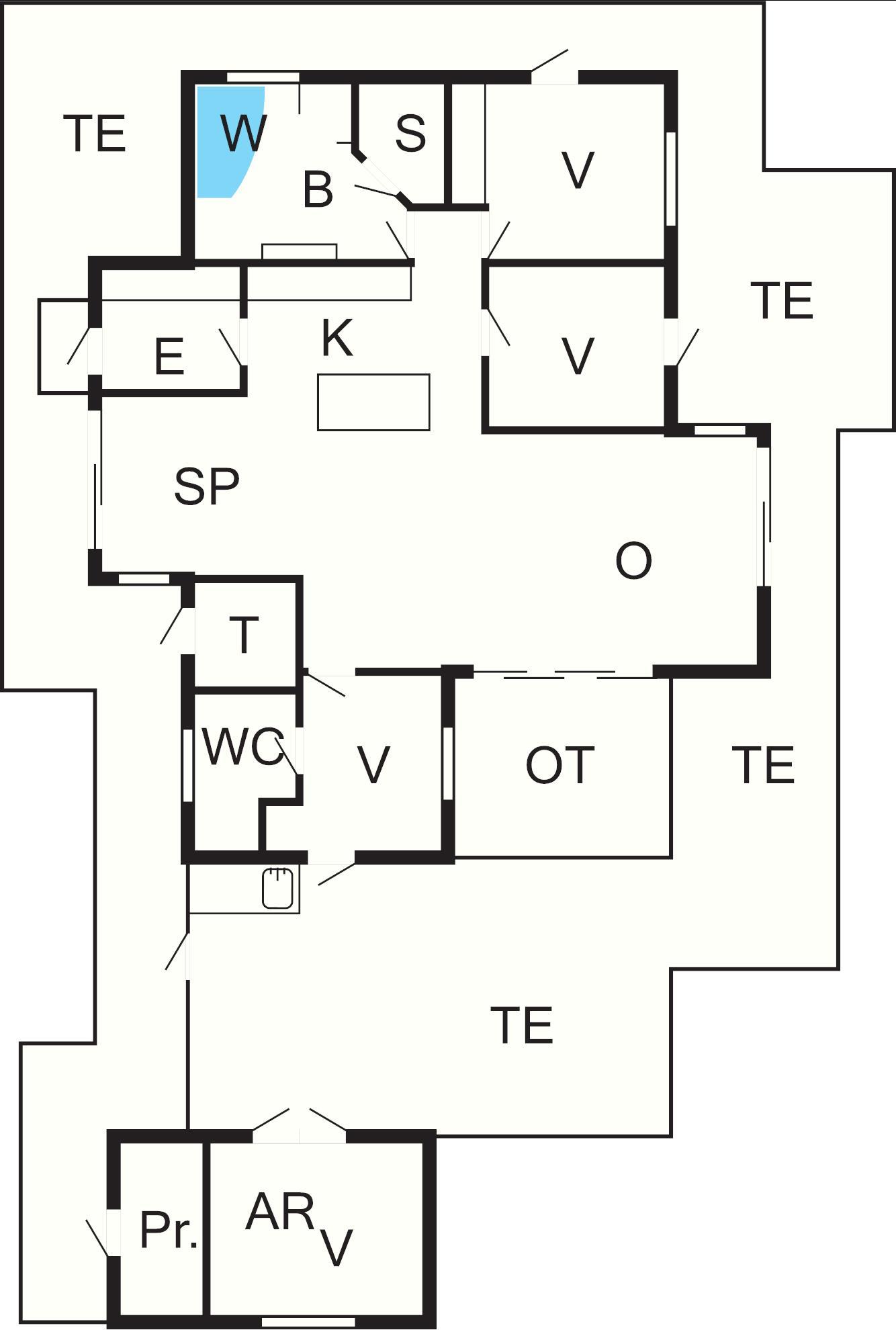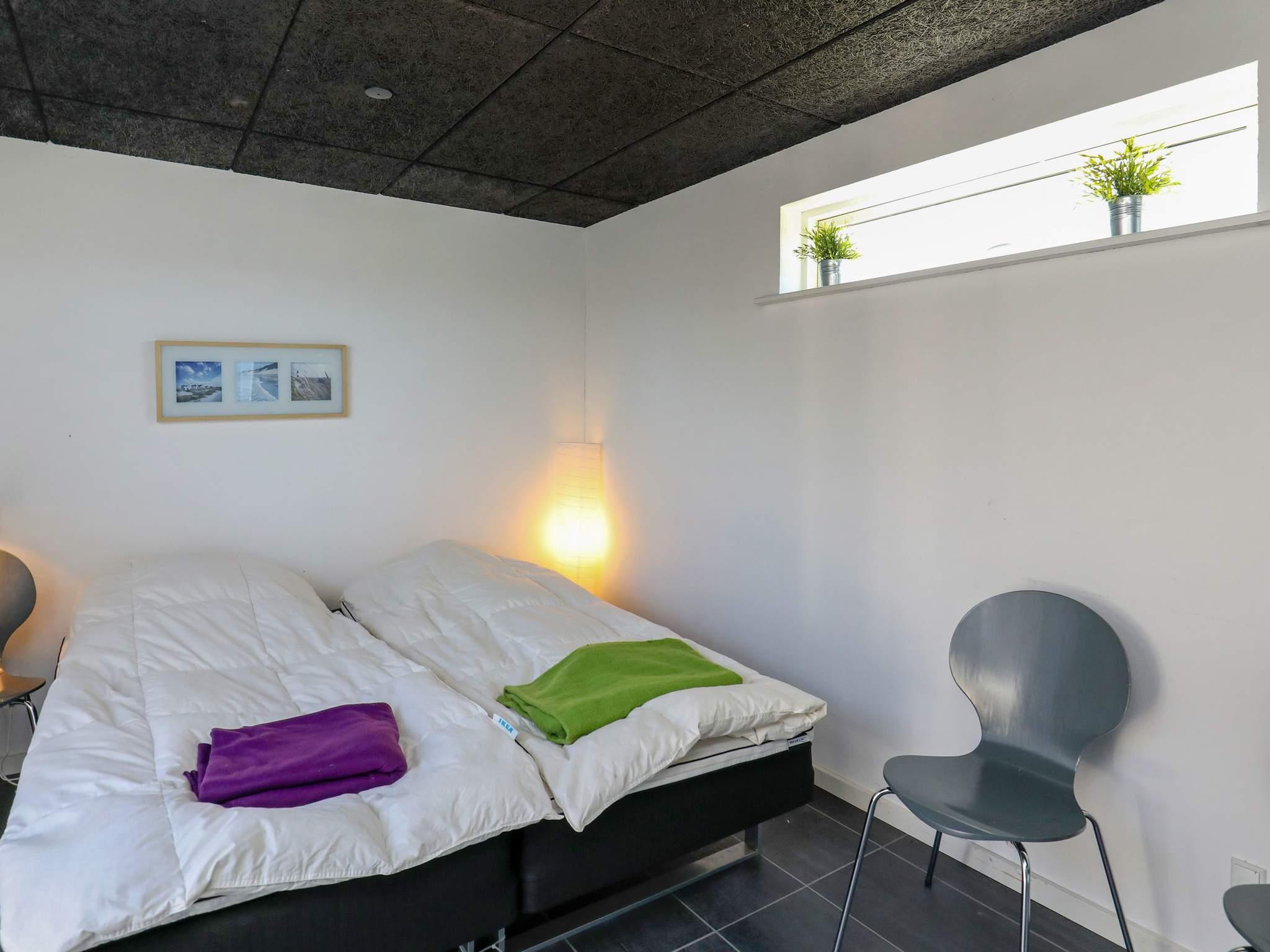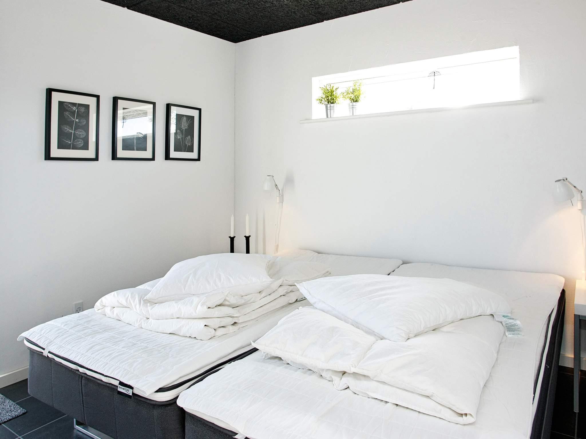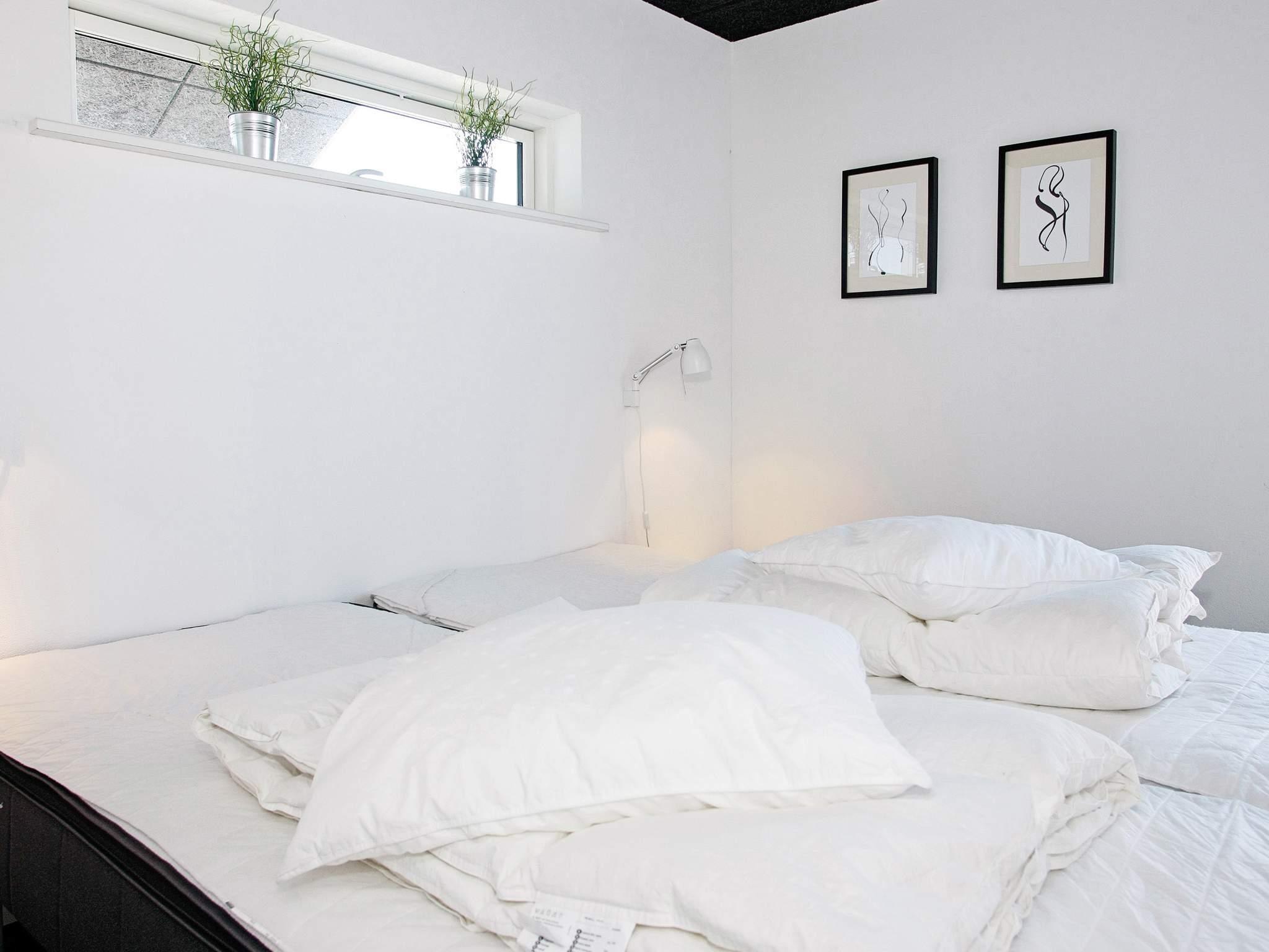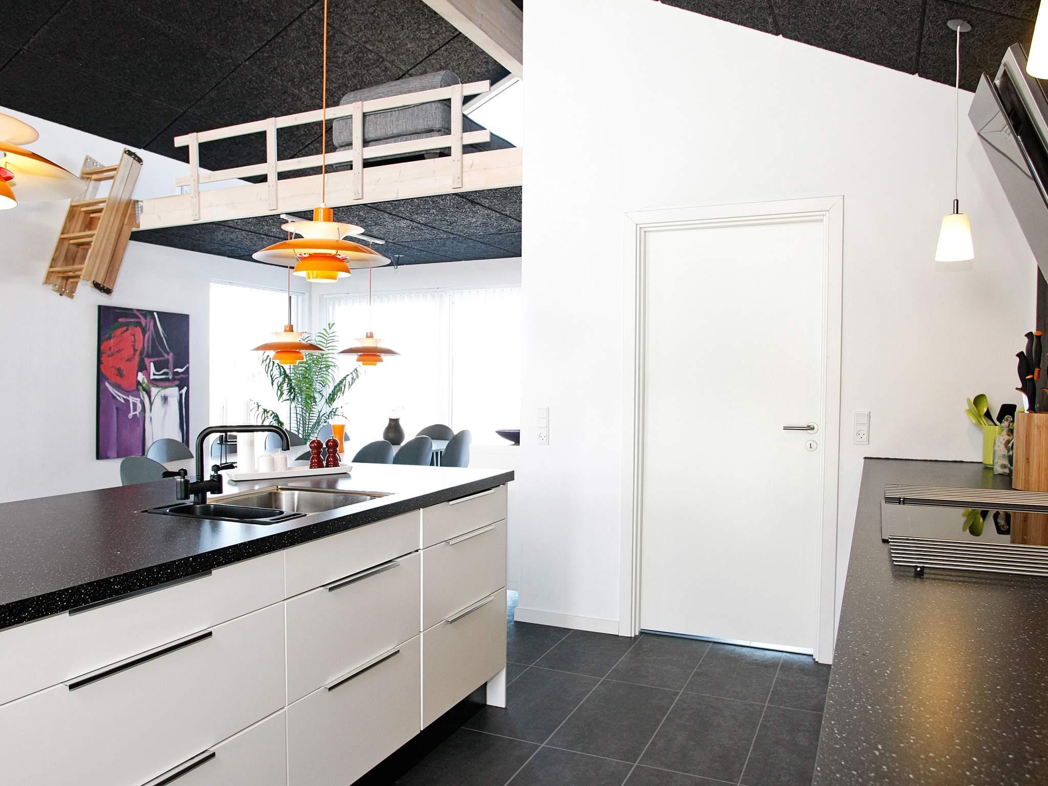 Huset byder på en moderne og eksklusiv indretning med åbent køkken-alrum, tre soveværelser – alle med direkte adgang til terrassen – samt en hems med to opredninger. Badeværelset har både spabad og adgang til sauna, og derudover findes et gæstetoilet med bruser. Bryggerset er praktisk indrettet med bordplade, vaskemaskine og tørretumbler. Gulvvarme i alle rum sikrer komfort året rundt, og flere af husets vinduespartier går fra gulv til loft, hvilket giver et fantastisk lysindfald og en følelse af åbenhed. Et af soveværelserne har eget TV, og der er opsat ekstra køleskab til drikkevarer. Til hygge og varme indendørs er der installeret en bioethanolpejs, som skaber stemning uden lugtgener. Ejeren har med sikker hånd skabt en harmonisk indretning, hvor moderne design og kvalitetsmøbler smelter sammen med kunst og udsmykning i en stilfuld helhed. Beliggende på en åben naturgrund i et fredeligt ferieområde med adgang til fælles legeplads og boldbane, er rammerne sat for en afslappende og oplevelsesrig ferie.