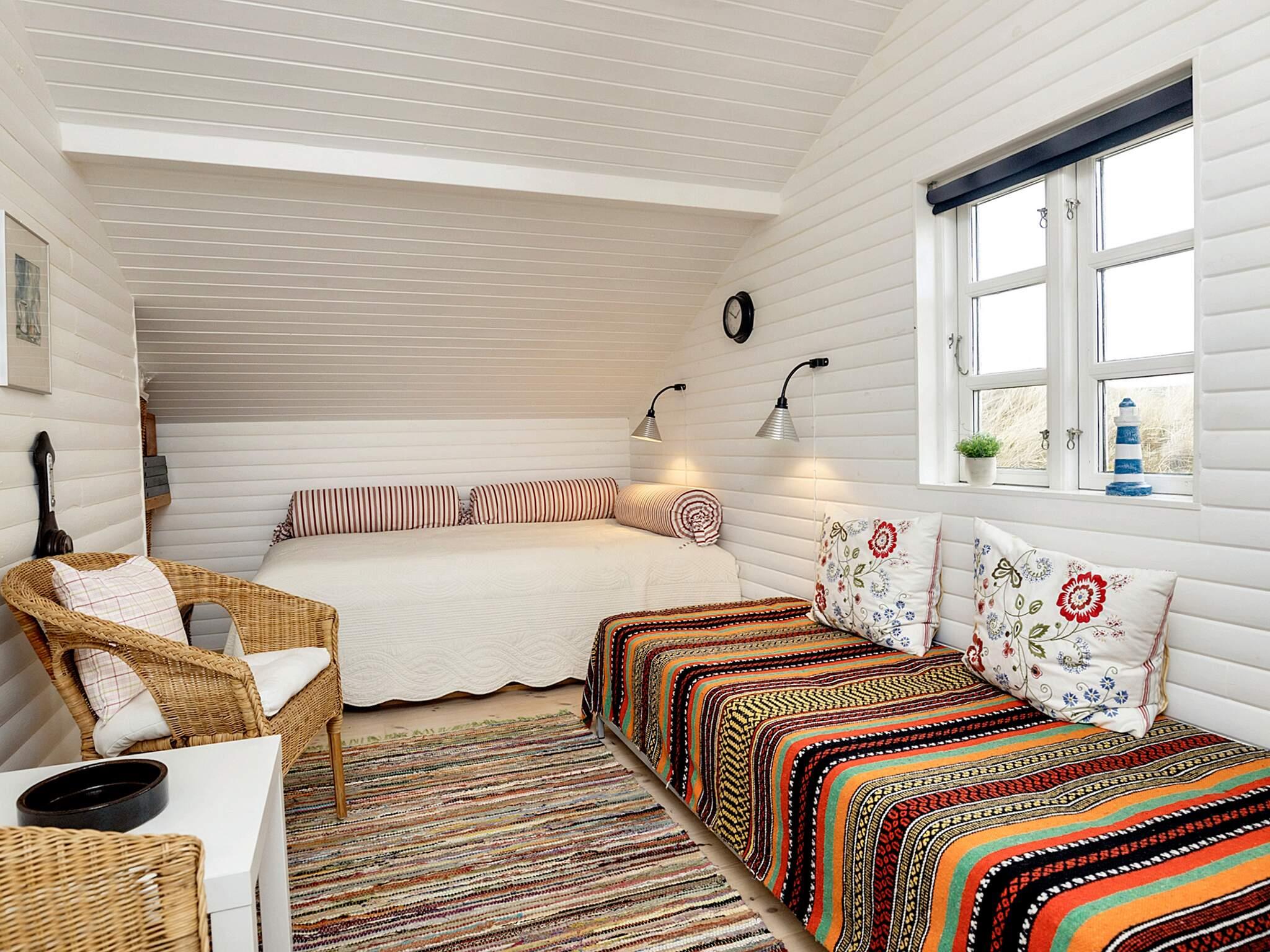 Sommerhus i første klitrække til Tranum Strand, her kan man høre Vesterhavet bruse. Gemt i læ mellem klitterne finder I dette charmerende lille sommerhus. Sommerhuset er hyggeligt indrettet med køkken, spiseafdeling samt stue i åben forbindelse. I stuen er der en hyggelig brændeovn. 1 soveværelse med dobbeltseng. Husets andet soveværelse er i forlængelse af huset som et anneks, og her er der 1 dobbeltseng og 1 enkeltseng. Badeværelse med bruseniche. Dejlig ugeneret, lukket terrasse.