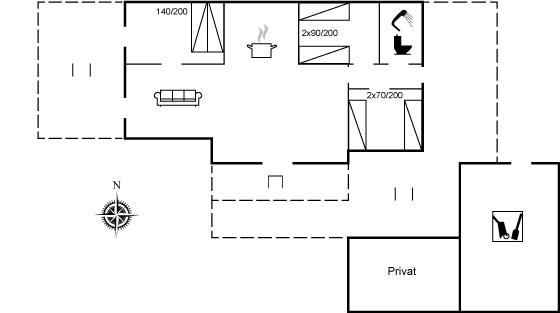 Der er i alt 3 soveværelser. Sovepladserne fordeler sig på: 2 sovepladser i dobbeltseng. 4 sovepladser i enkeltsenge.