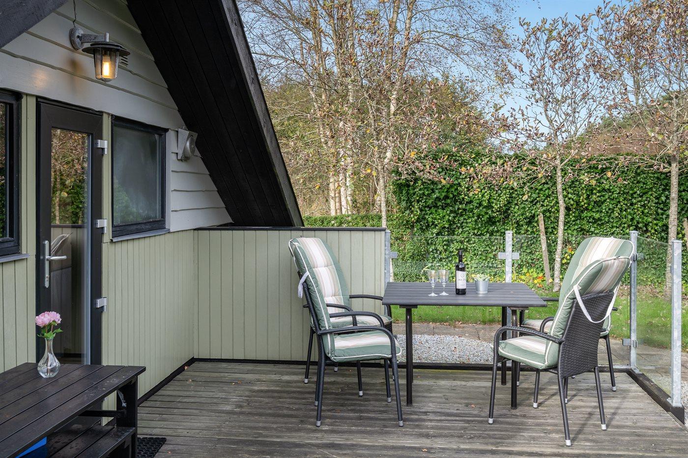 Ferieboligen er beliggende på en 1375 m² stor havegrund. Der er 4400 m til havet. Nærmeste forretning er beliggende i en afstand af 2000 m. Til ferieboligen hører 40 m² terrasseareal. Desuden er der 6 m² overdækket terrasse. Der er redskabsrum. Trampolin. Parkering ved ferieboligen.