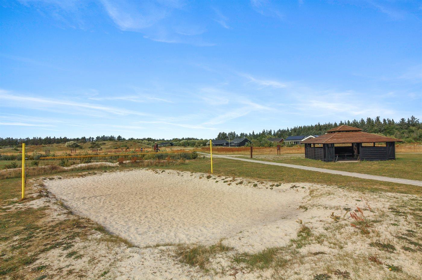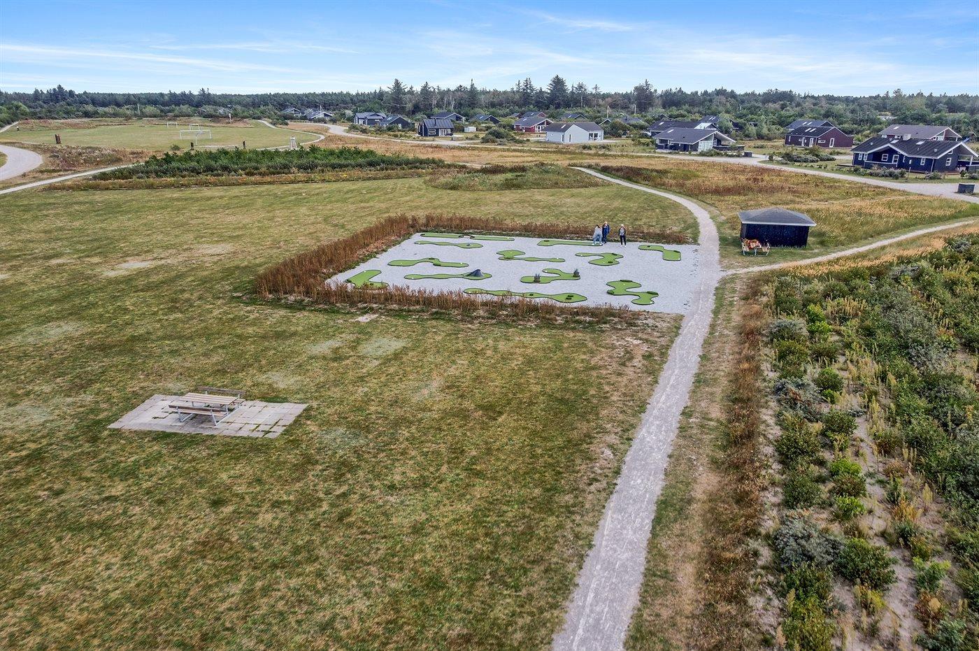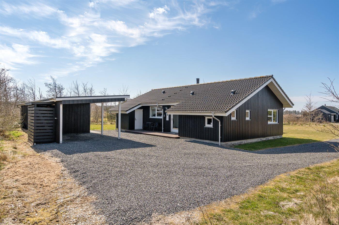 Ferieboligen er beliggende på en 1500 m² stor naturgrund. Der er 3500 m til havet. Nærmeste forretning er beliggende i en afstand af 3000 m. Der er en golfbane i en afstand af 10000 m. Til ferieboligen hører åbent terrasseareal. Desuden er der overdækket terrasse. Der er redskabsrum. Der ligger en legeplads i en afstand af 50 m. Grill til rådighed. Der er carport til rådighed. Der er installeret stik til opladning af elbil. Type 2 stik. Med 11 kW ladeeffekt. Parkering ved ferieboligen.
