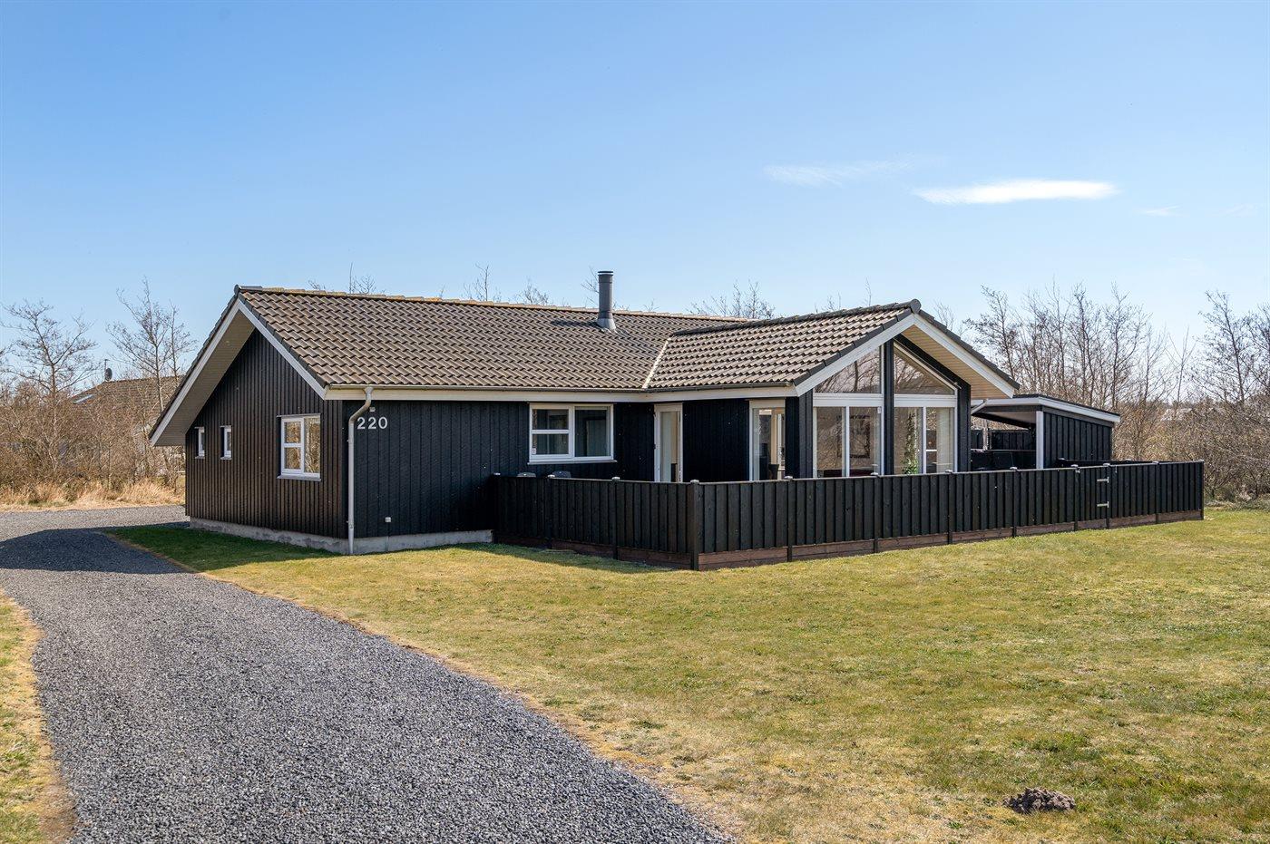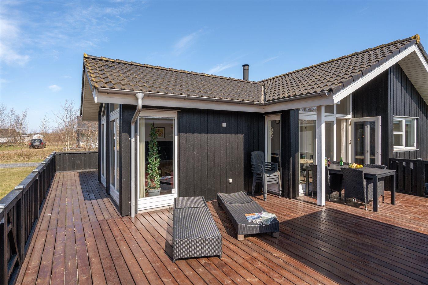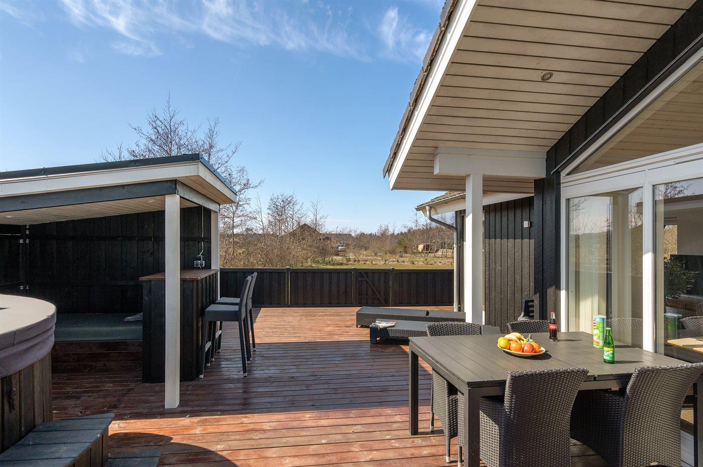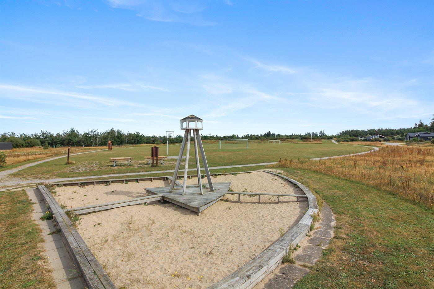 Ferieboligen er beliggende på en 1500 m² stor naturgrund. Der er 3500 m til havet. Nærmeste forretning er beliggende i en afstand af 3000 m. Der er en golfbane i en afstand af 10000 m. Til ferieboligen hører åbent terrasseareal. Desuden er der overdækket terrasse. Der er redskabsrum. Der ligger en legeplads i en afstand af 50 m. Grill til rådighed. Der er carport til rådighed. Der er installeret stik til opladning af elbil. Type 2 stik. Med 11 kW ladeeffekt. Parkering ved ferieboligen.