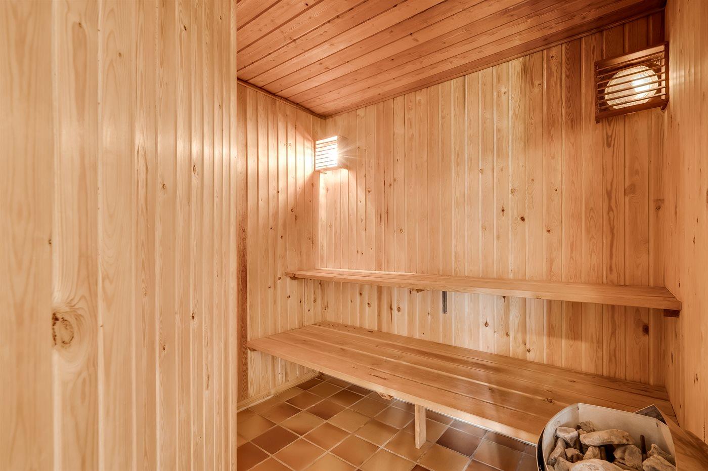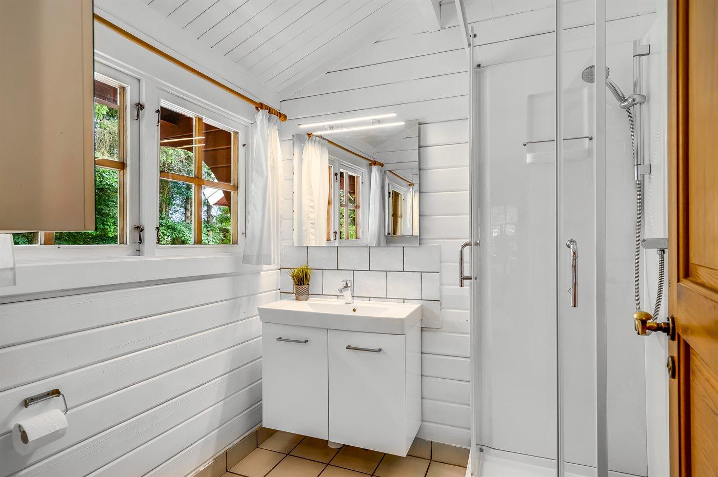 Der er 2 badeværelser med bruseniche og 2 toiletter. Der er gulvvarme på 2 badeværelser. I saunaen er der mulighed for afslapning.
