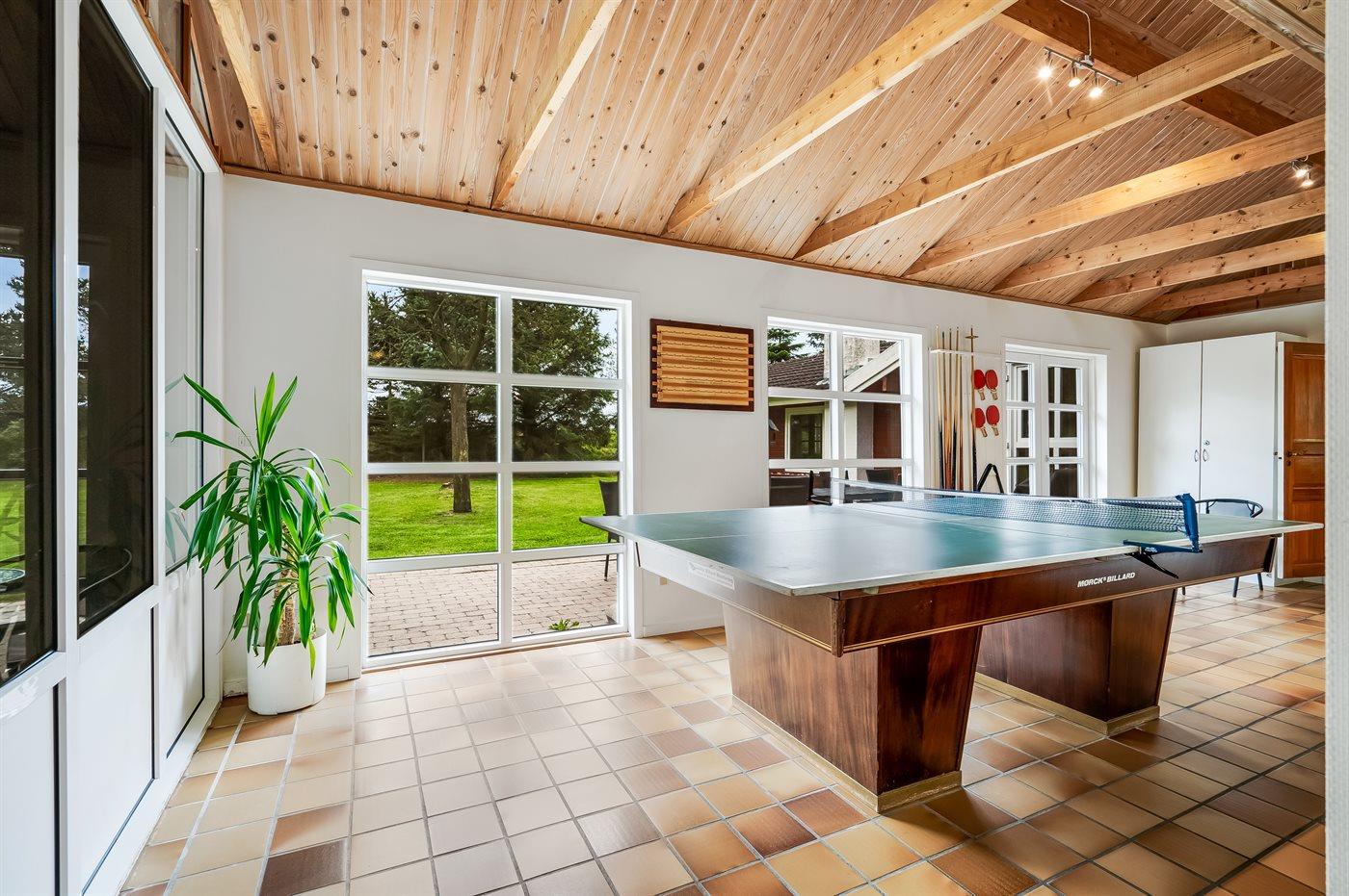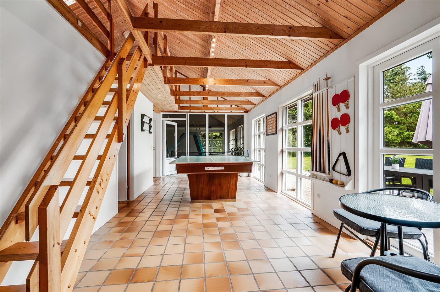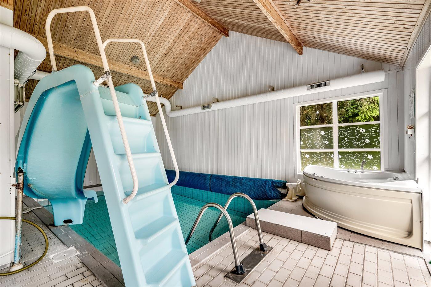 Hyggeligt poolhus nær havet med spa, aktivitetsrum og stor naturgrund i Tranum.