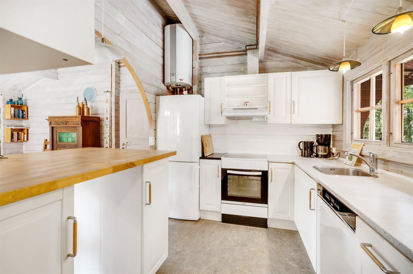 Køkkenet er udstyret med 1 køleskab. Der er 4 keramiske kogeplader, varmluftovn, mikrobølgeovn samt opvaskemaskine.
