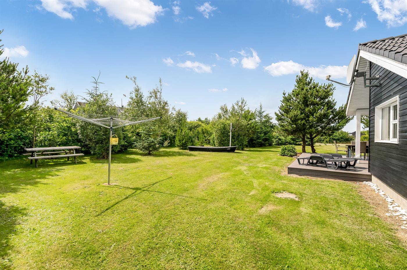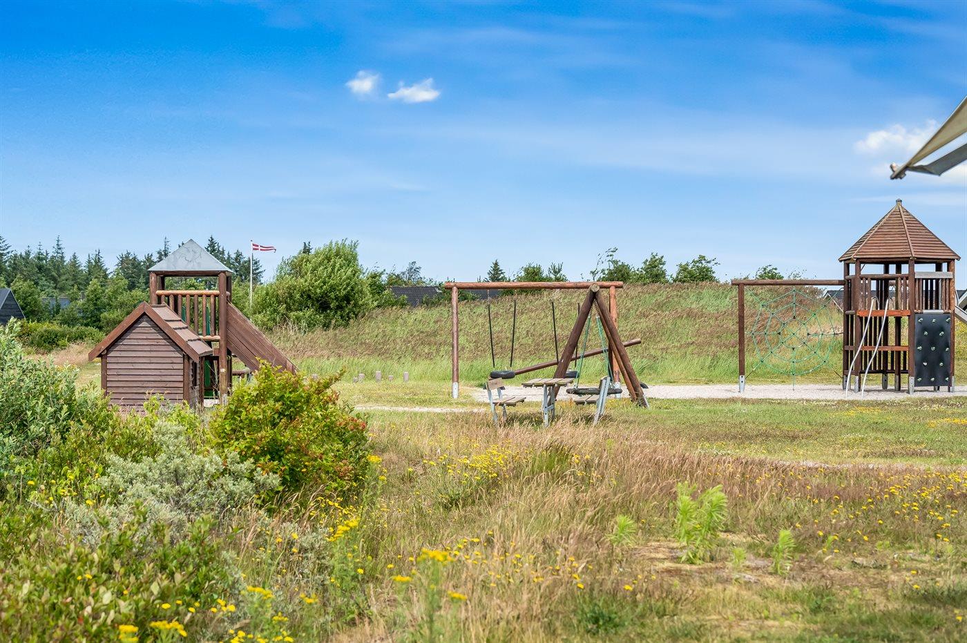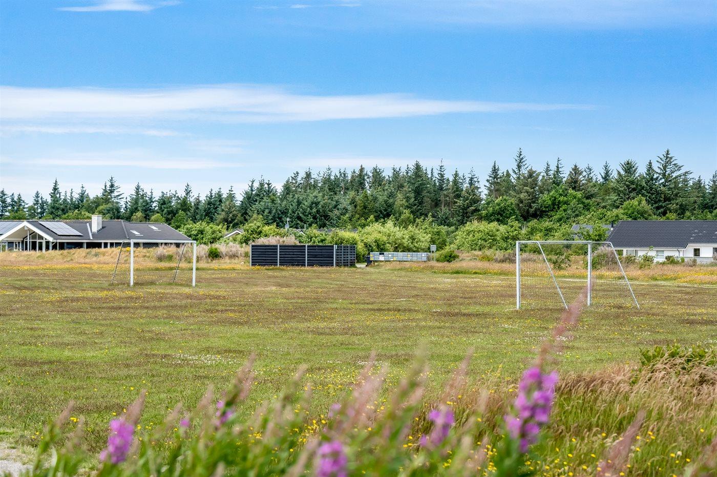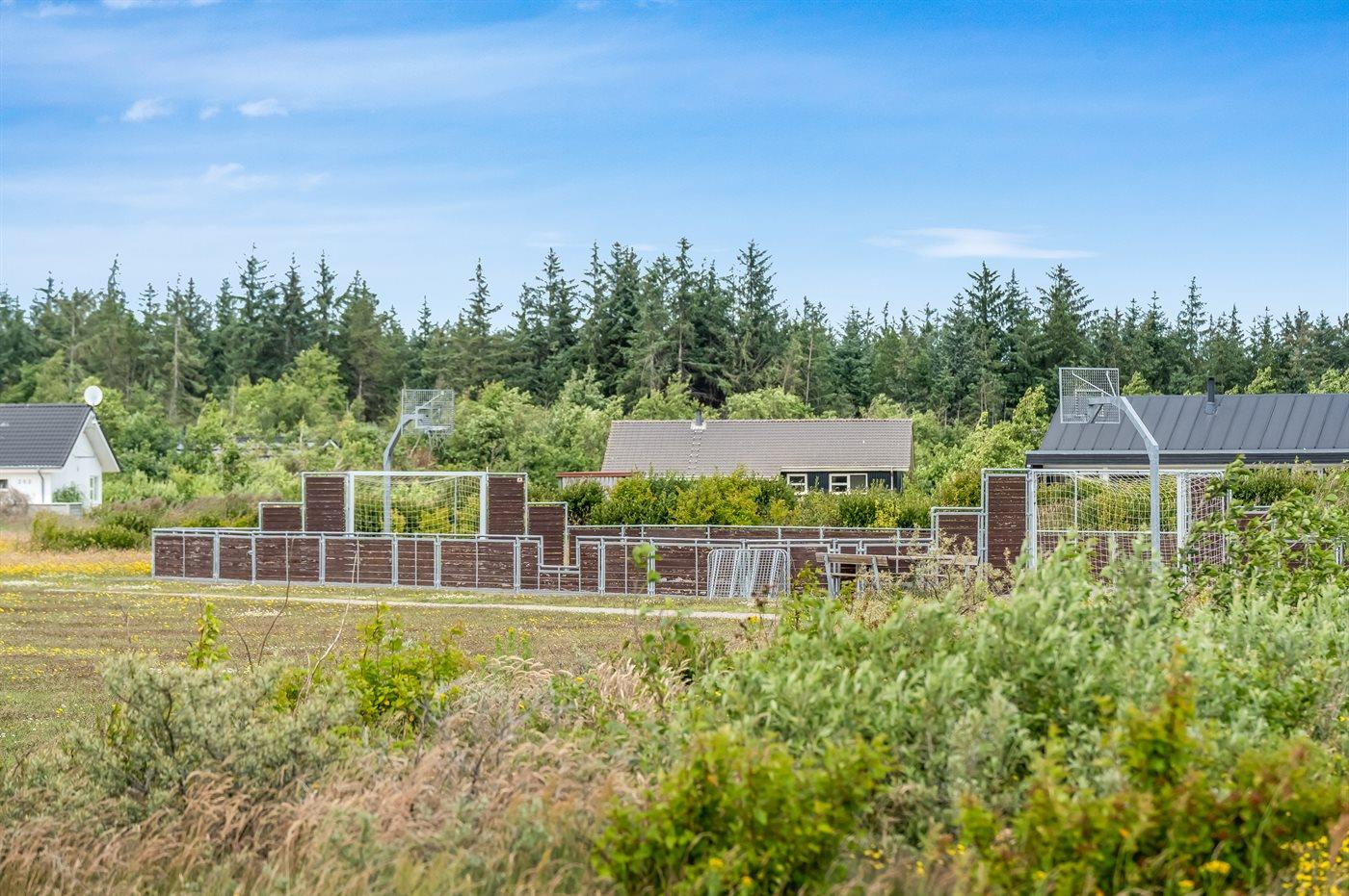 Ferieboligen er beliggende på en 1450 m² stor naturgrund. Der er 3500 m til havet. Nærmeste forretning er beliggende i en afstand af 3000 m. Der er en golfbane i en afstand af 10000 m. Til ferieboligen hører 100 m² terrasseareal. Der er redskabsrum. Sandkasse. Shelter. Grill til rådighed. Der er installeret stik til opladning af elbil. Type 2 stik. Med 11 kW ladeeffekt. Parkering ved ferieboligen.