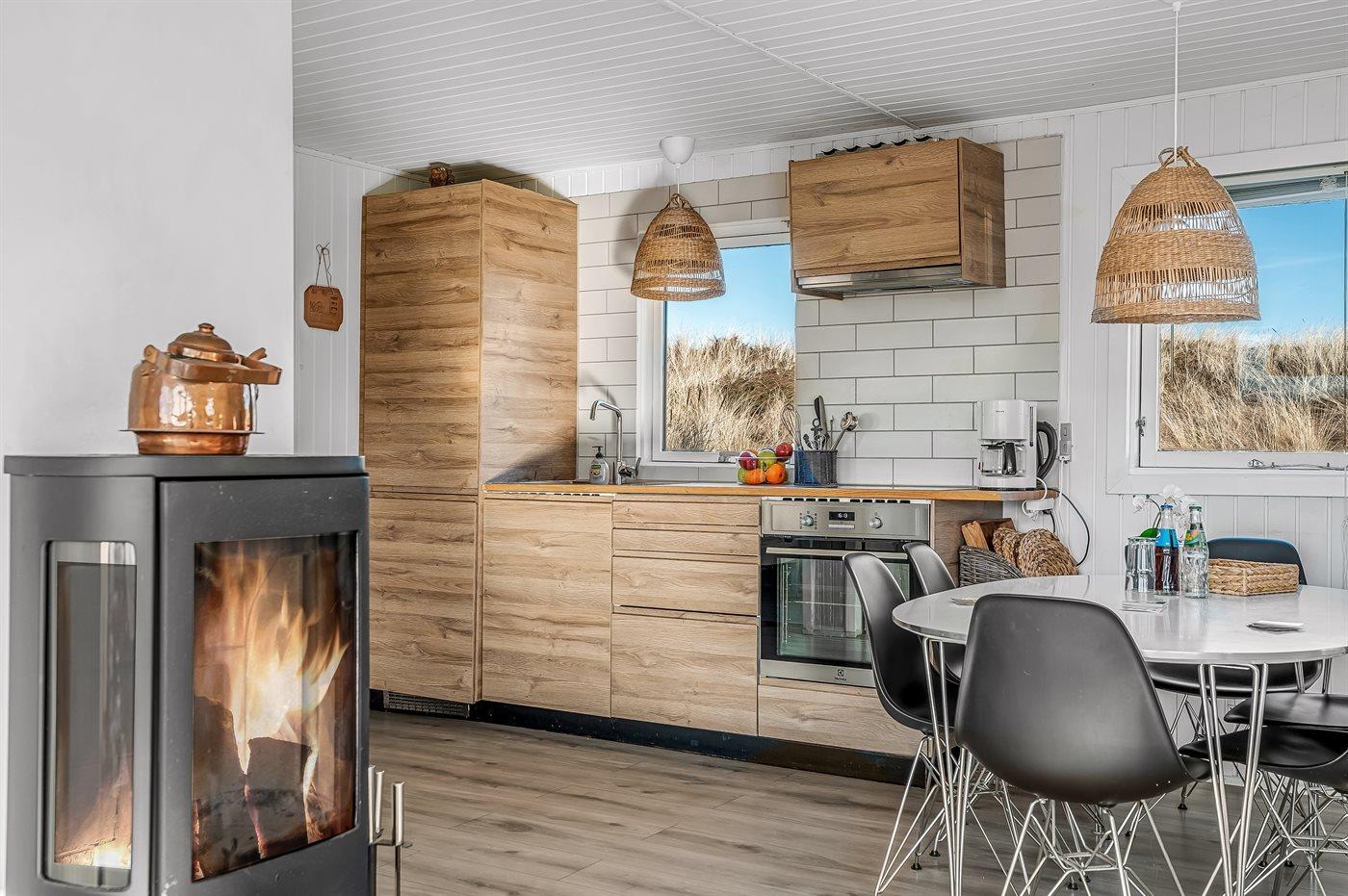 Køkkenet er udstyret med 1 køleskab. Der er 4 induktionskogeplader, varmluftovn, mikrobølgeovn.