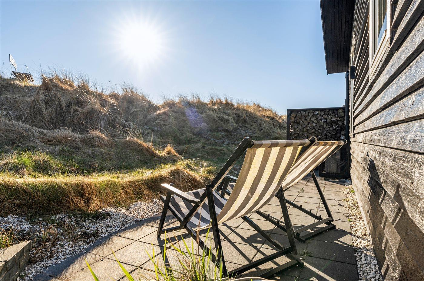 Ferieboligen er beliggende på en 3995 m² stor klitgrund. Der er 200 m til havet. Nærmeste forretning er beliggende i en afstand af 5000 m. Til ferieboligen hører åbent terrasseareal. Udendørs bruser. Grill til rådighed. Der er installeret stik til opladning af elbil. CEE stik. Parkering ved ferieboligen.
