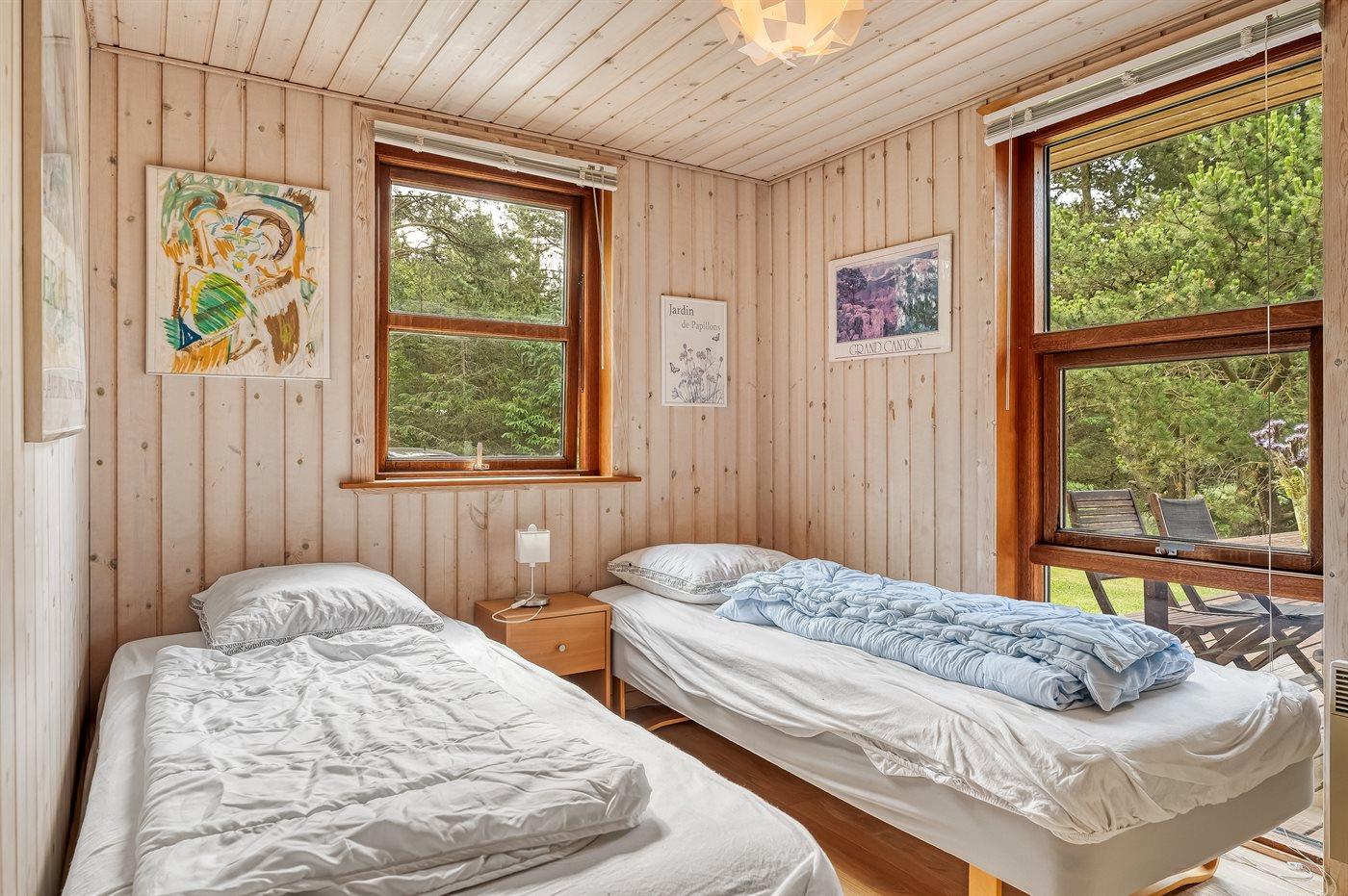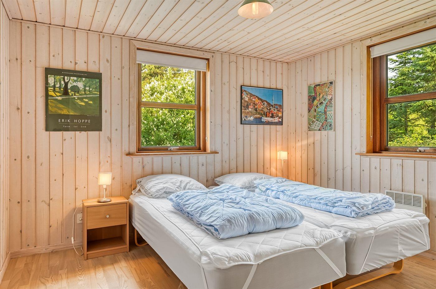 Der er i alt 4 soveværelser. Sovepladserne fordeler sig på: 4 sovepladser i dobbeltsenge. 6 sovepladser i enkeltsenge. 2 af disse sovepladser befinder sig på husets hems.