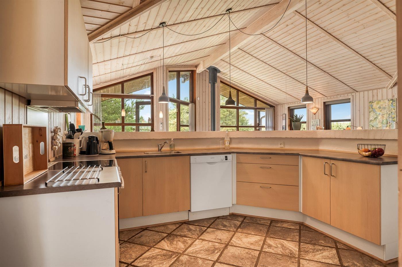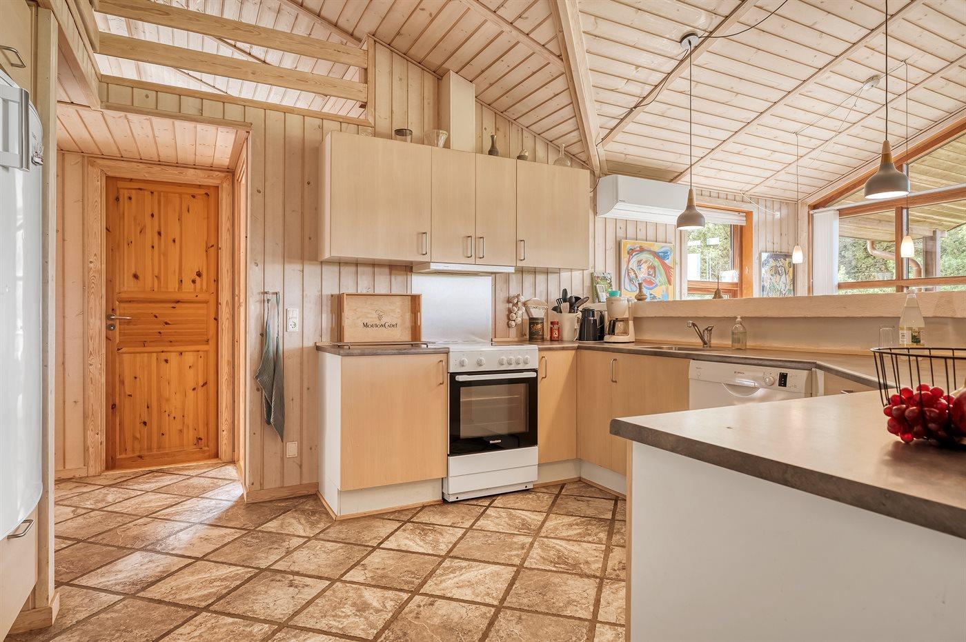 Køkkenet er udstyret med 1 køleskab. Der er 4 keramiske kogeplader, varmluftovn, mikrobølgeovn samt opvaskemaskine.