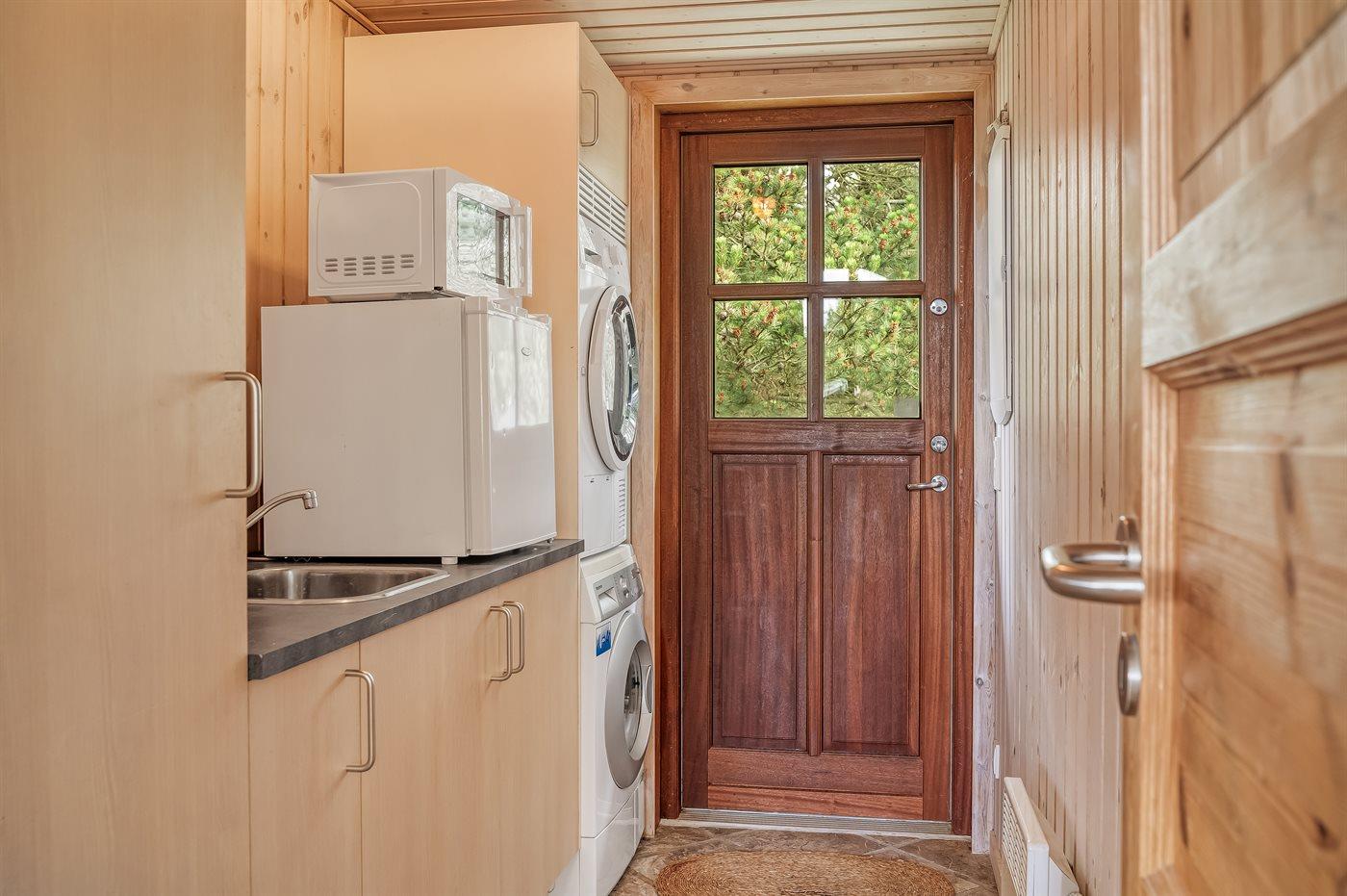Sommerhuset egner sig til 8 personer. Ferieboligen er på 125 m² og er bygget i 2005. Det er tilladt at medbringe 1 husdyr. Ferieboligen er udstyret med 1 energibesparende luft til luft varmepumpe. Der er gulvvarme i alle klinkegulve. Ferieboligen har vaskemaskine. Tørretumbler. Frysekapacitet på 60 liter. Der er desuden brændeovn.
